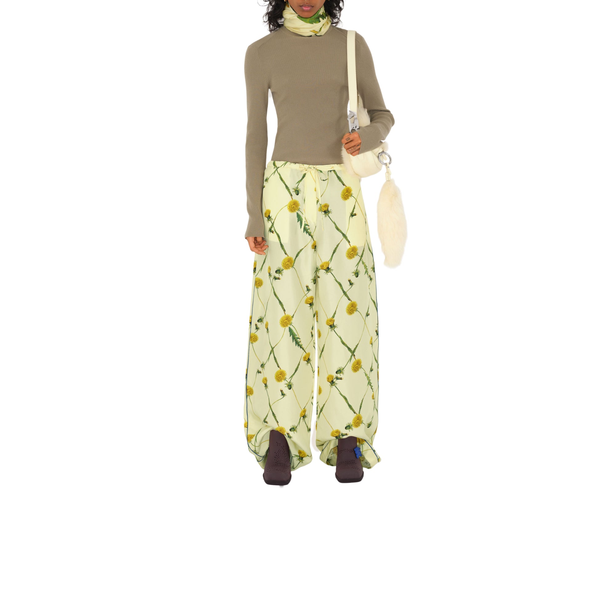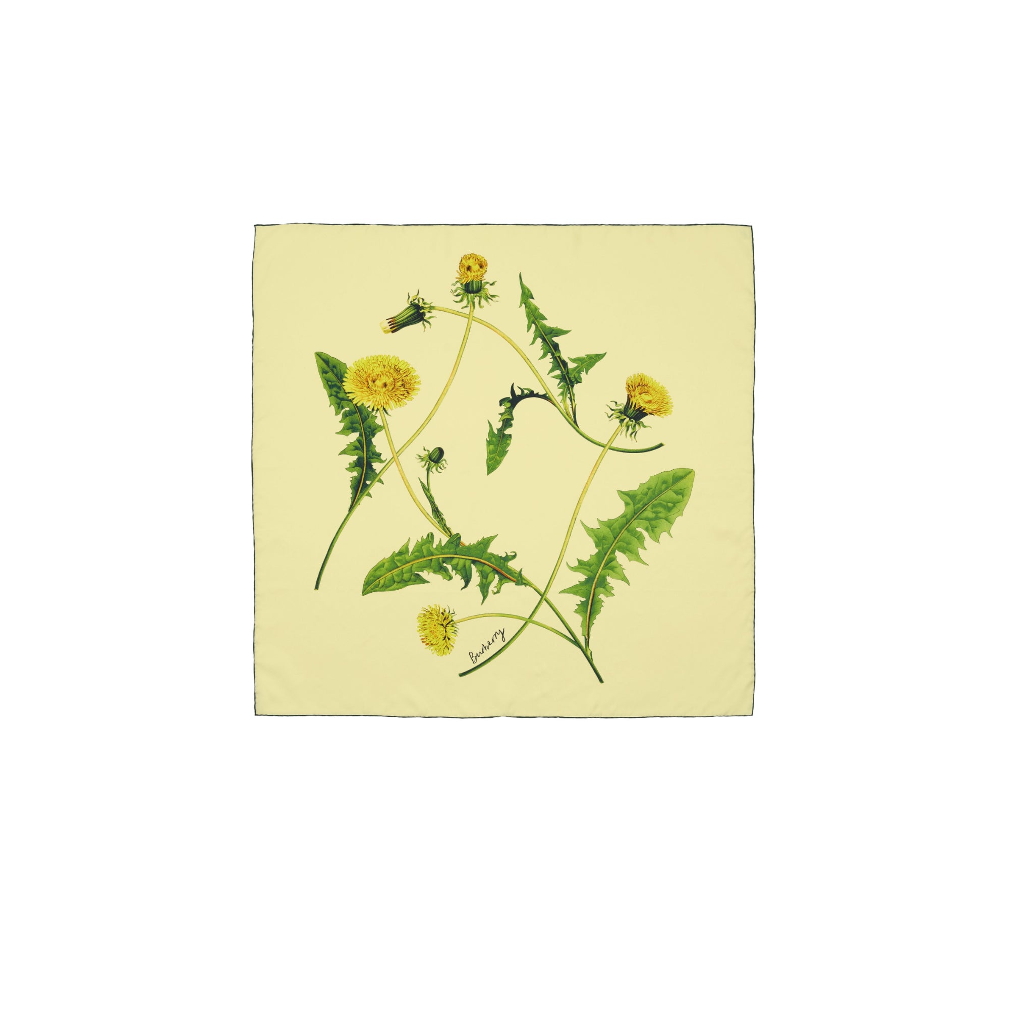 상품설명 : 이탈리아에서 제작된 실크 트윌 소재의 스카프. 시즈널 민들레 패턴과 로고 프린트가 특징.##정사각형#수작업으로 완성된 테두리#버버리 레터링 프린트
