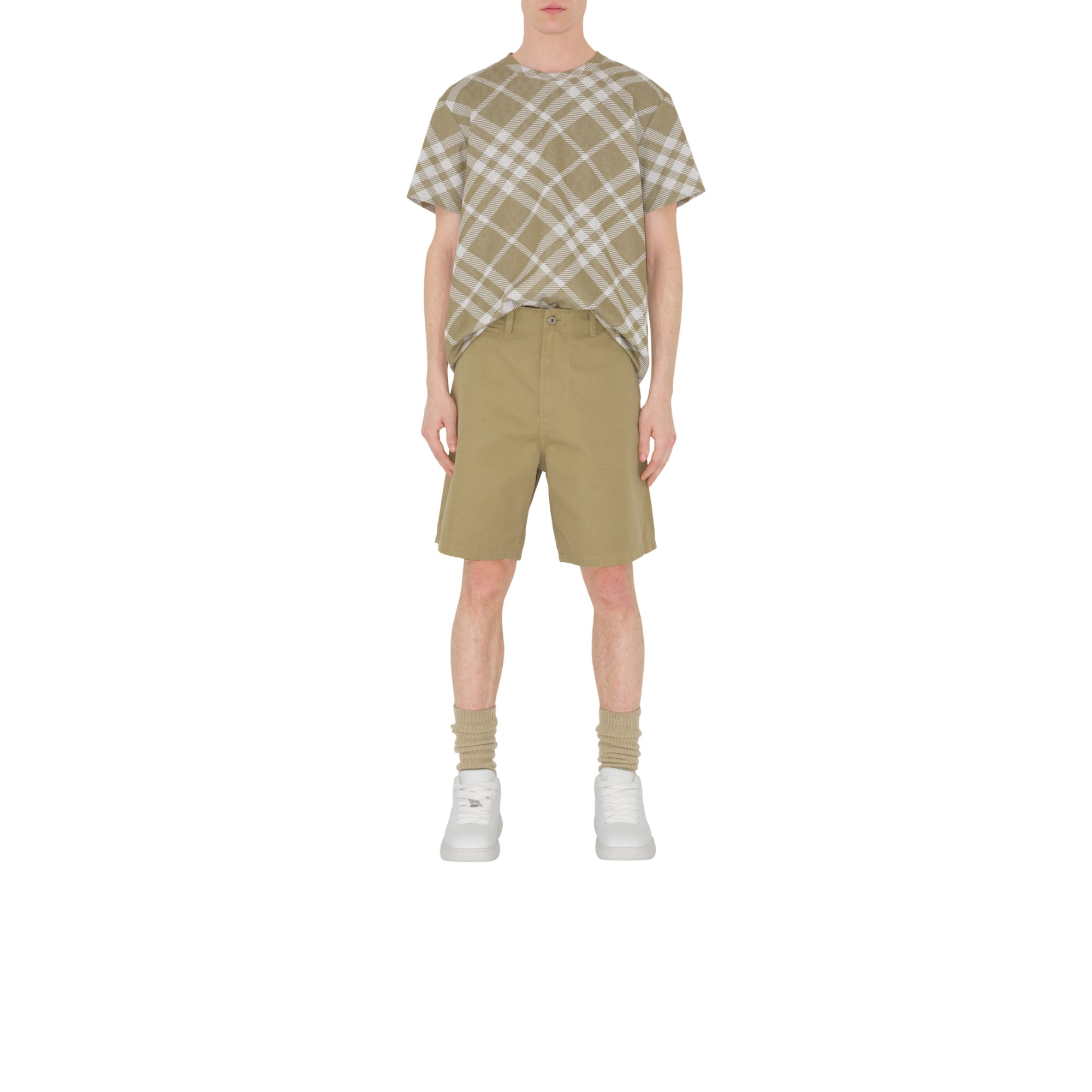 혼용률 : 오버사이즈핏: 과장된 실루엣을 연출하는 가장 루즈한 핏. 평소보다 작은 치수를 선택할 것을 권장합니다.#안쪽 다리 길이: 20cm (영국 사이즈 M)#모델 신장: 186cm. 모델이 착용한 의상은 영국 사이즈 M입니다.#면 100%#물세탁 가능#수입품