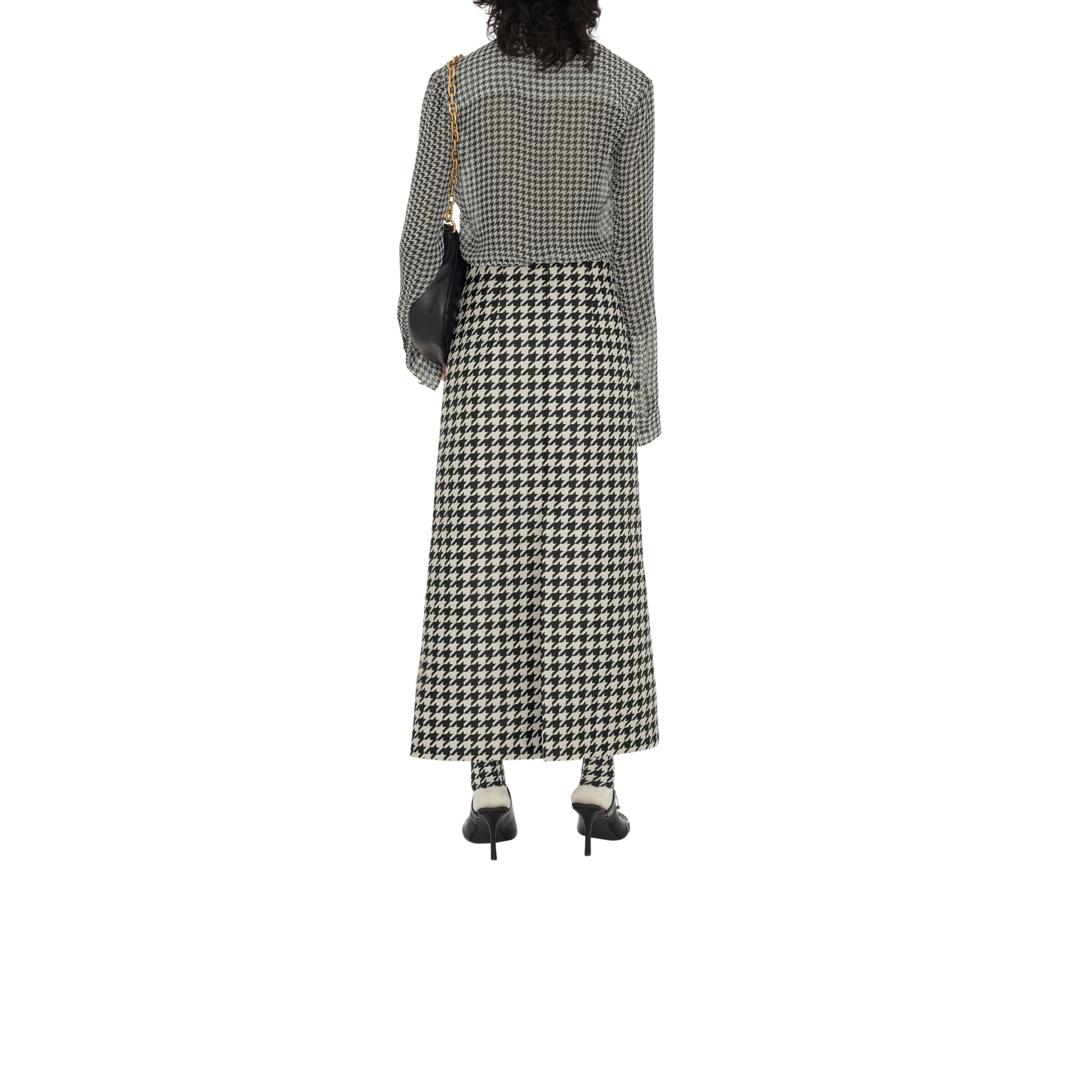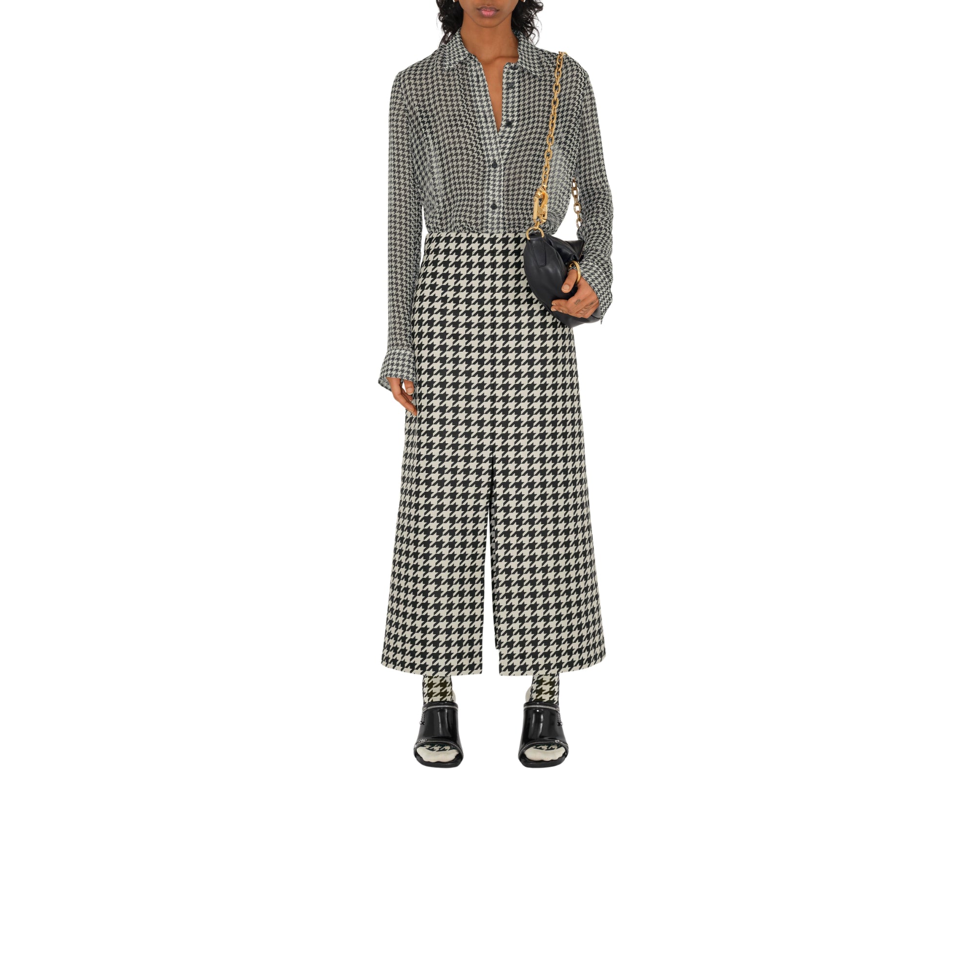 상품설명 : 하운즈투스 패턴과 과감한 트임 디테일이 돋보이는 트윌 소재의 스커트.##후크 및 지퍼 여밈