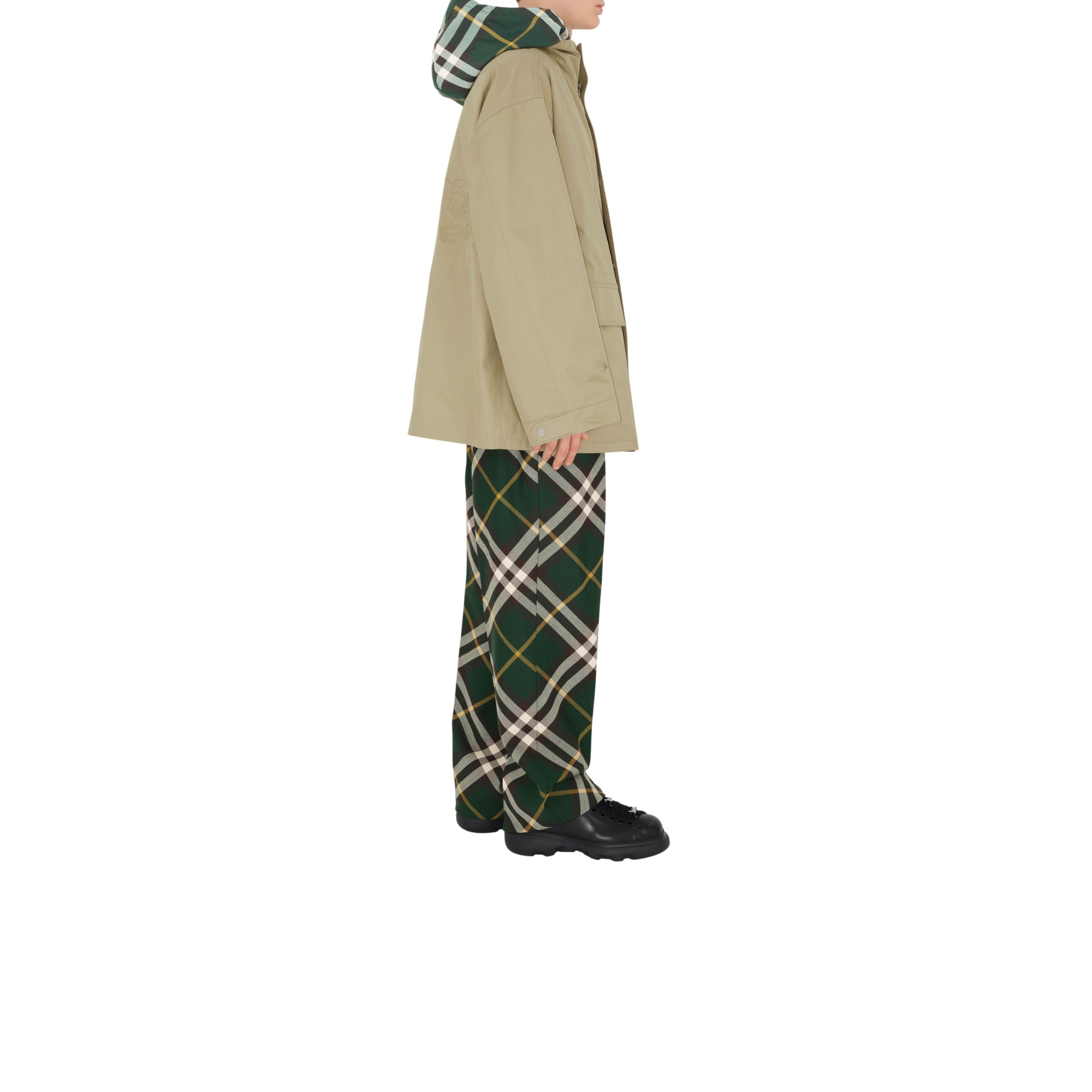 상품설명 : 생활 방수 면 개버딘 소재의 경량 재킷. 버버리 체크 후드가 돋보이며 릴랙스핏 실루엣과 기마상 디자인(Equestrian Knight Design, EKD) 아플리케가 특징.##양방향 지퍼 및 스냅 단추 여밈#접어 넣을 수 있는 드로스트링 후드#내부의 허리 드로스트링#스냅 단추 디테일의 플랩 포켓, 측면의 지퍼 포켓#스냅 단추 디테일의 신축성 있는 커프스#뒷면의 기마상 디자인(Equestrian Knight Design, EKD) 아플리케