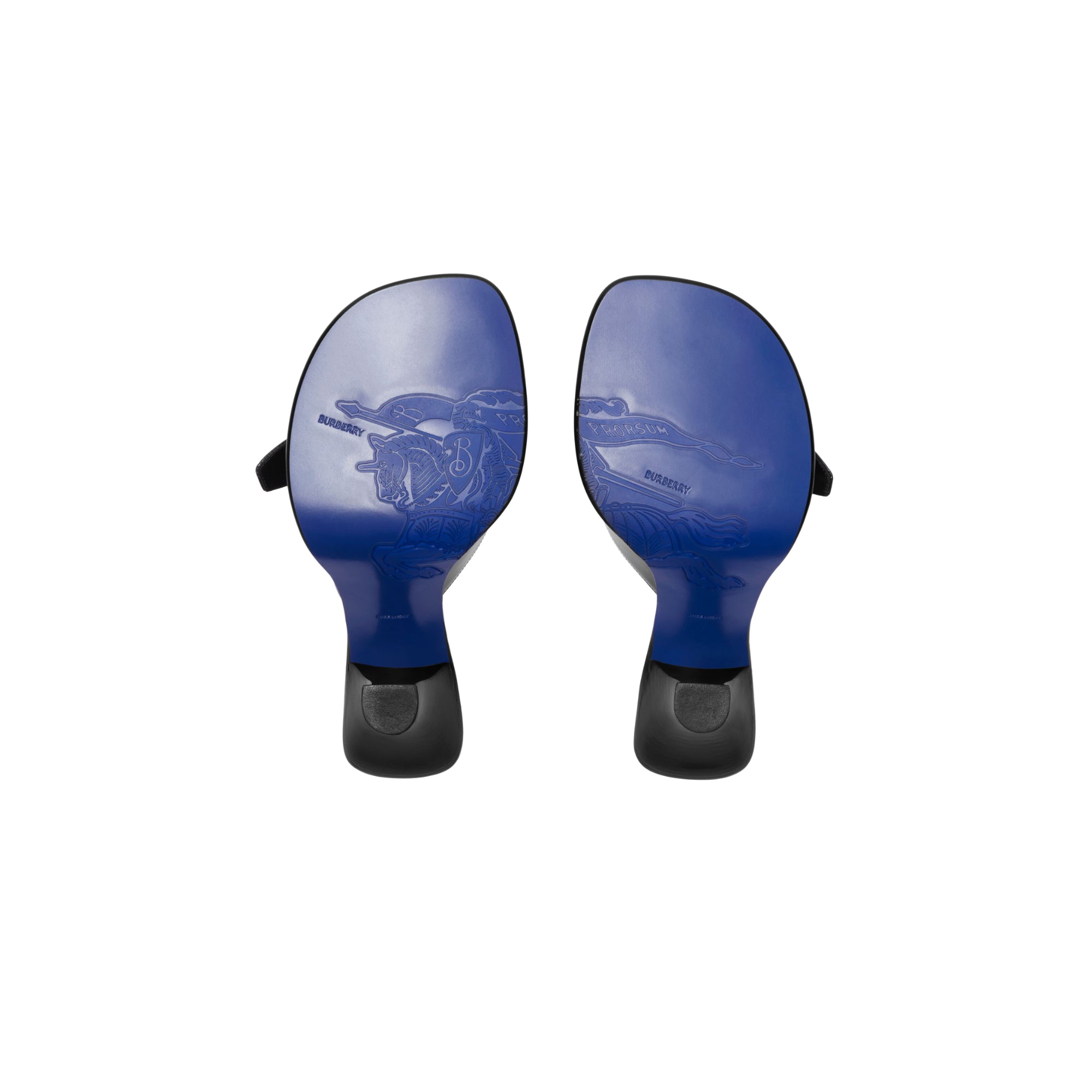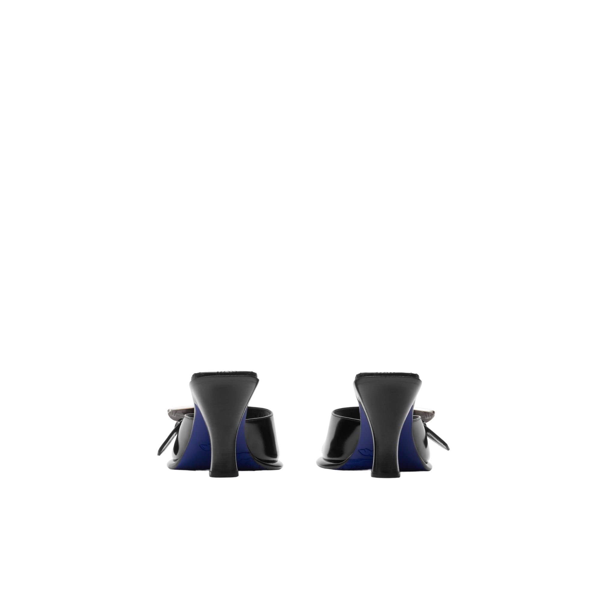 상품설명 : 송아지 가죽 소재로 이탈리아에서 제작된 힐 뮬. 넓은 스트랩의 쉴드 플라크에 연출된 에나멜 기마상 디자인(Equestrian Knight Design, EKD)이 특징.##사각 앞코#퀼팅 가죽 안창#브러시드 메탈 하드웨어#밑창의 기마상 디자인(Equestrian Knight Design, EKD)