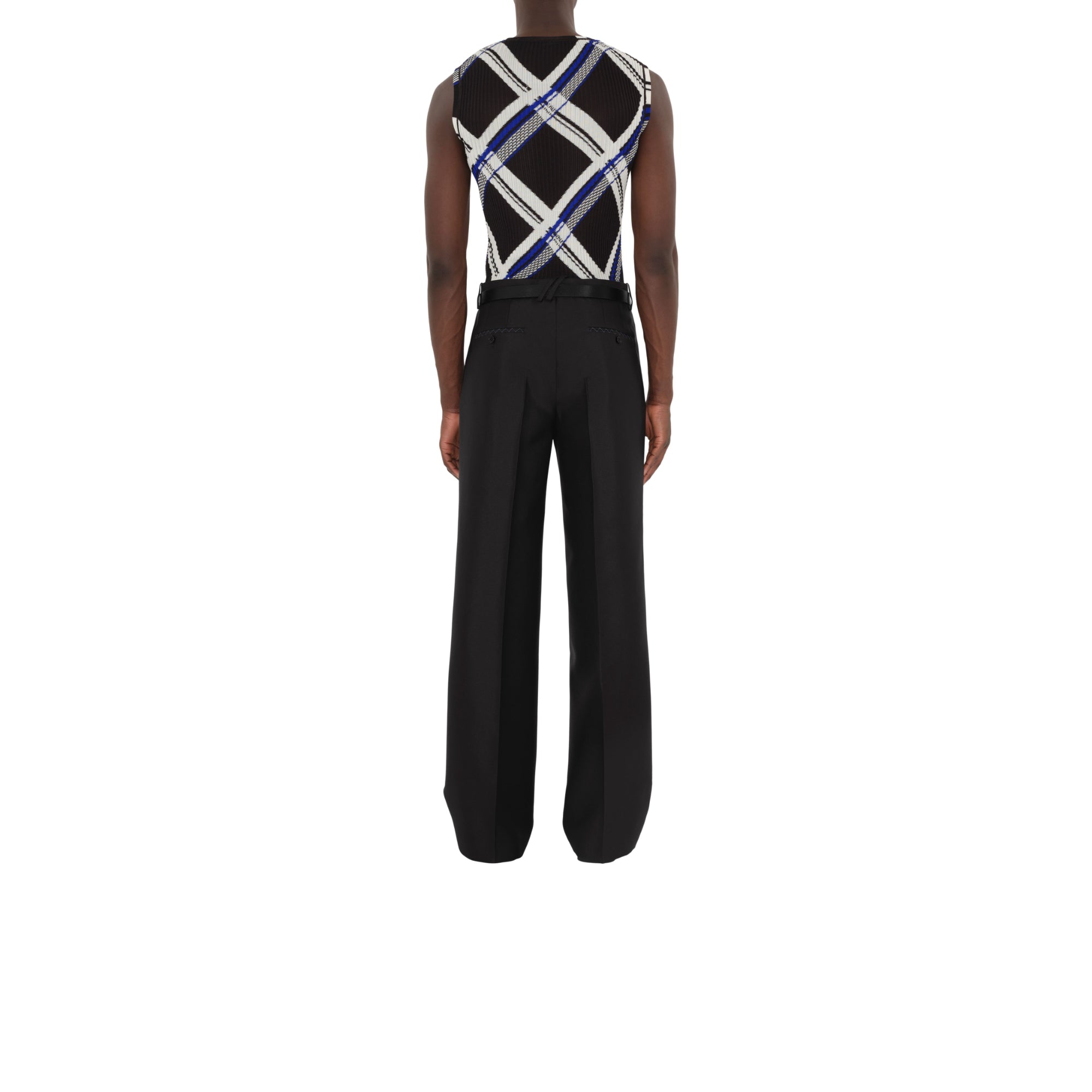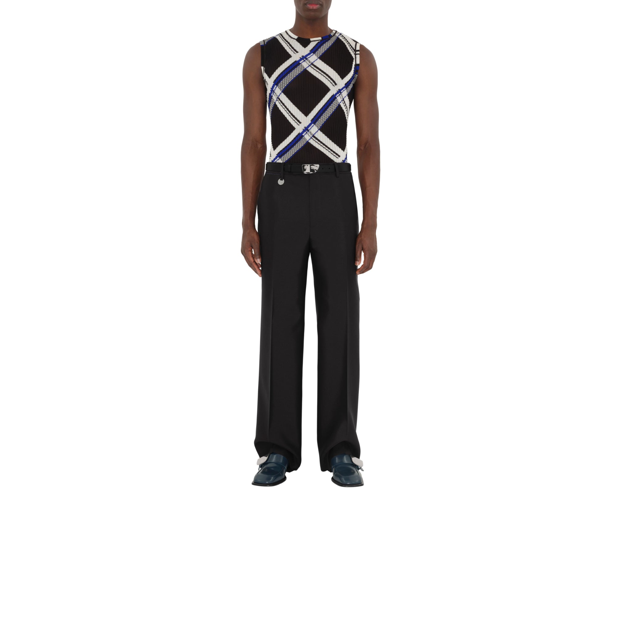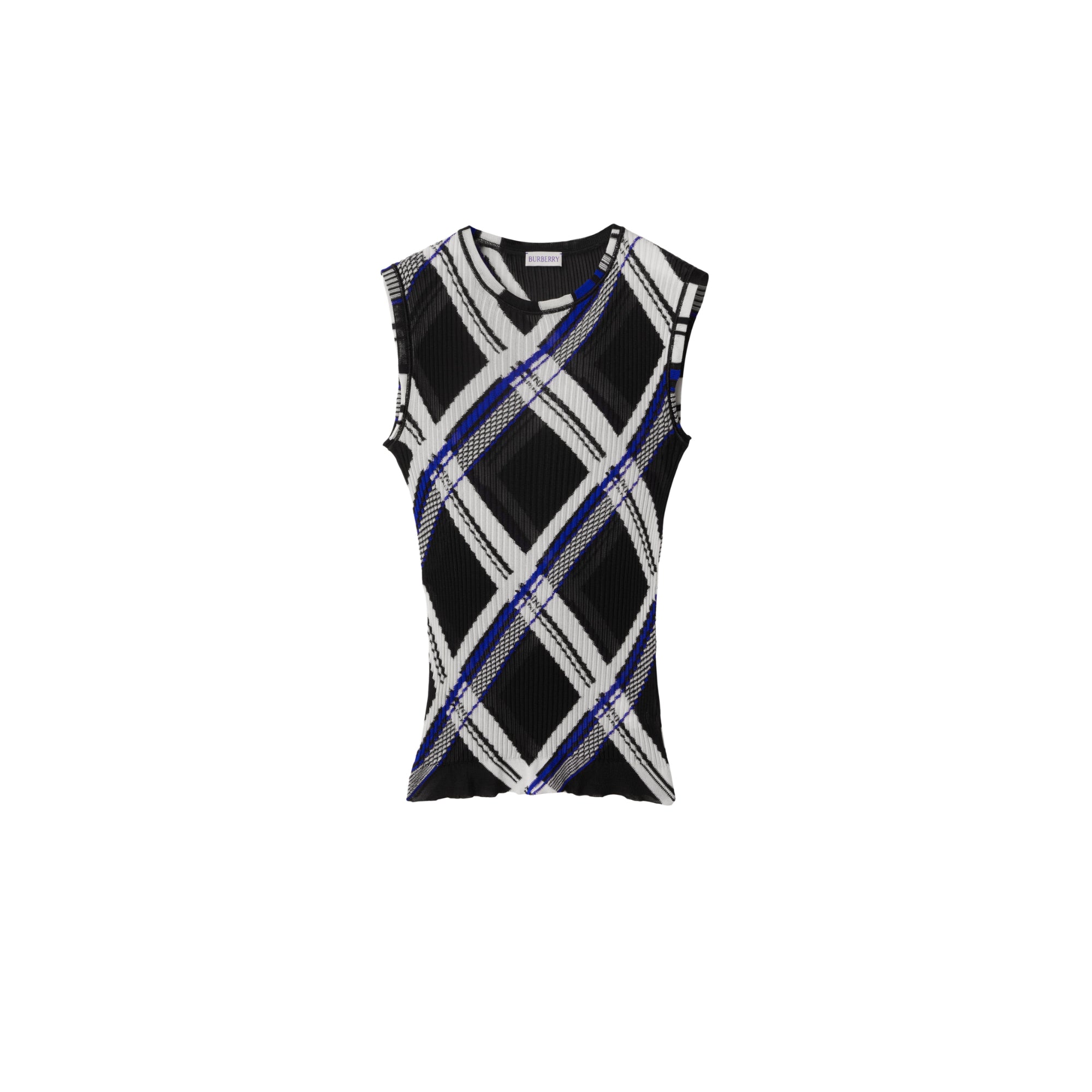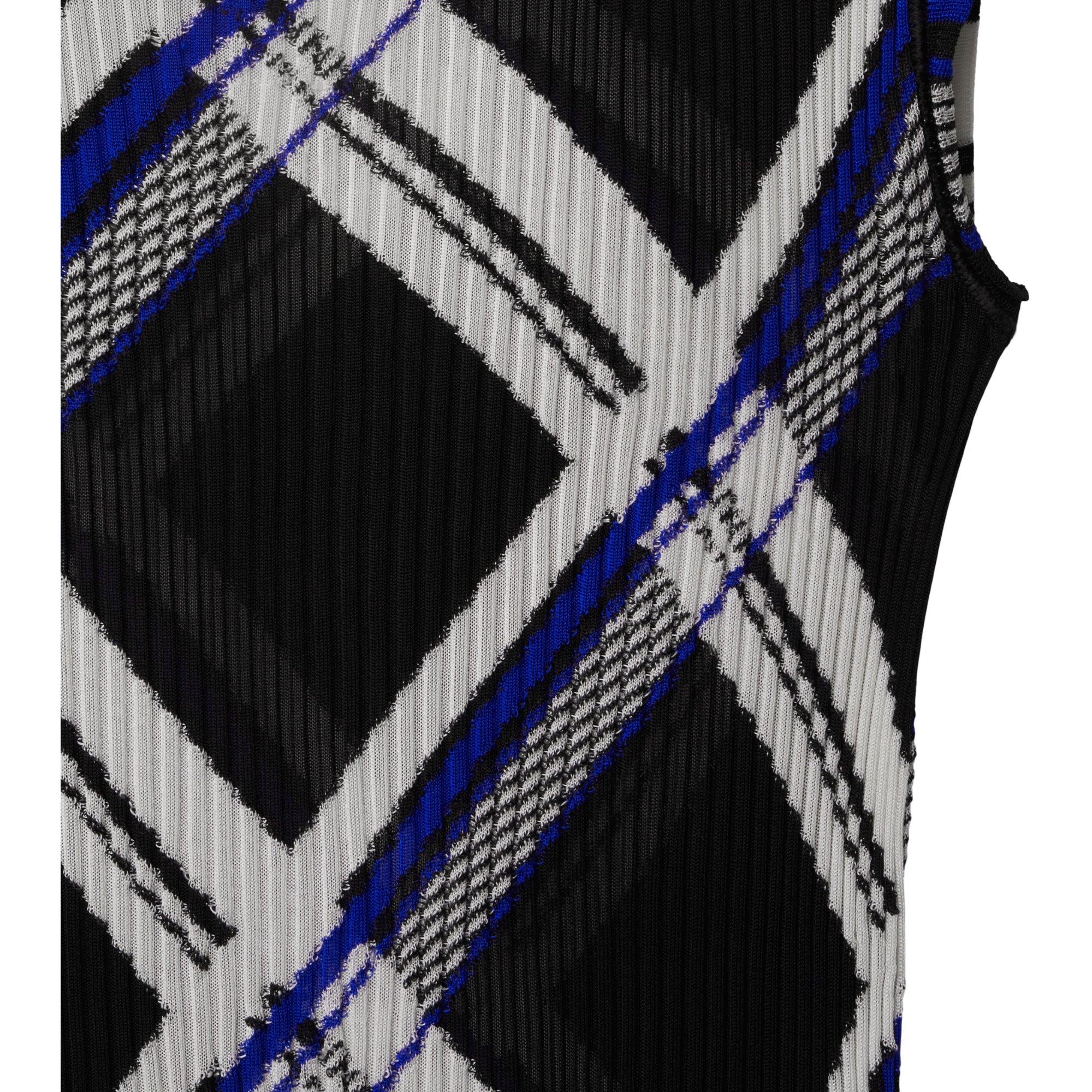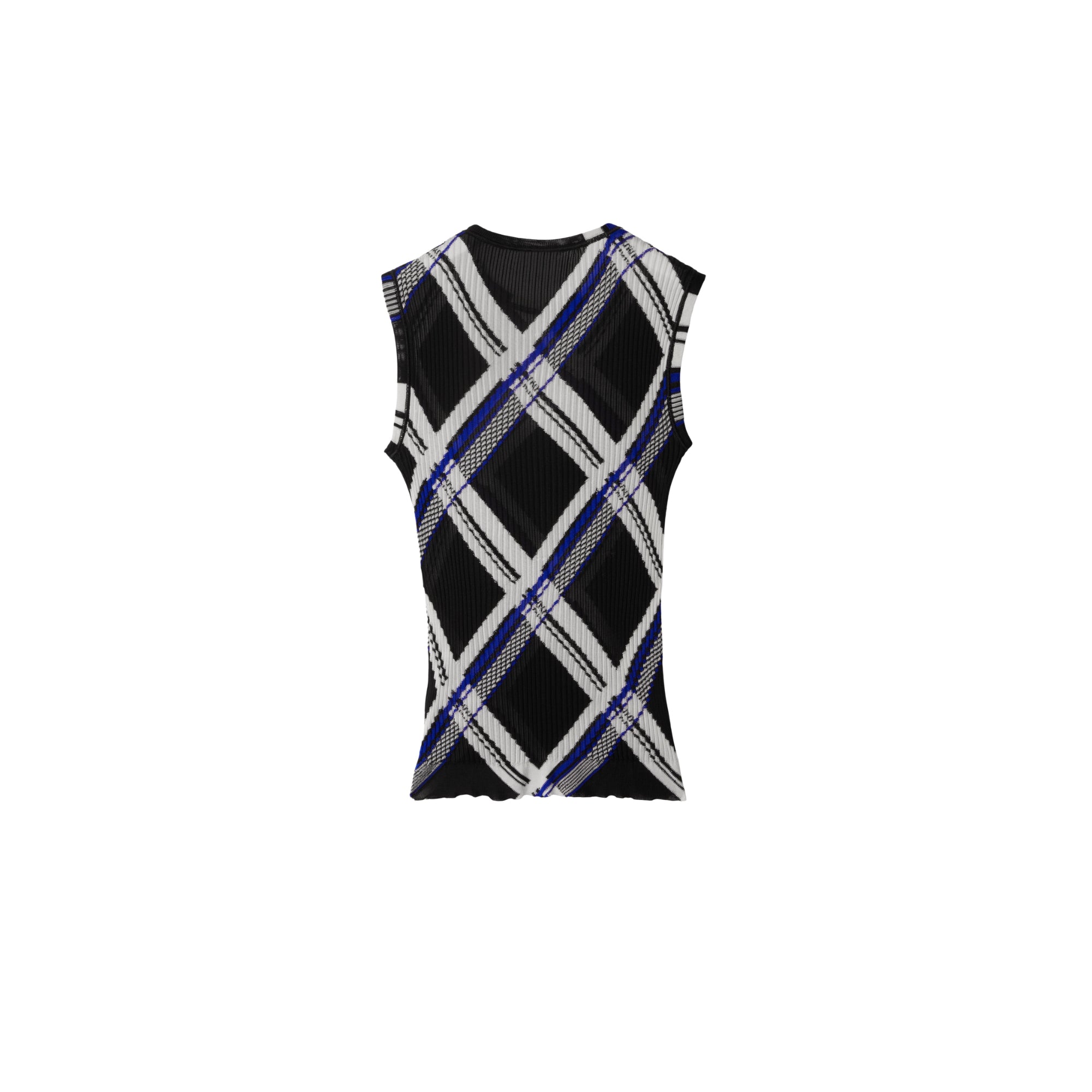 상품설명 : 이탈리아에서 제작된 크루넥 탱크 탑. 자카드직으로 연출된 시즈널 체크가 돋보이며, 슬림핏 실루엣이 특징.