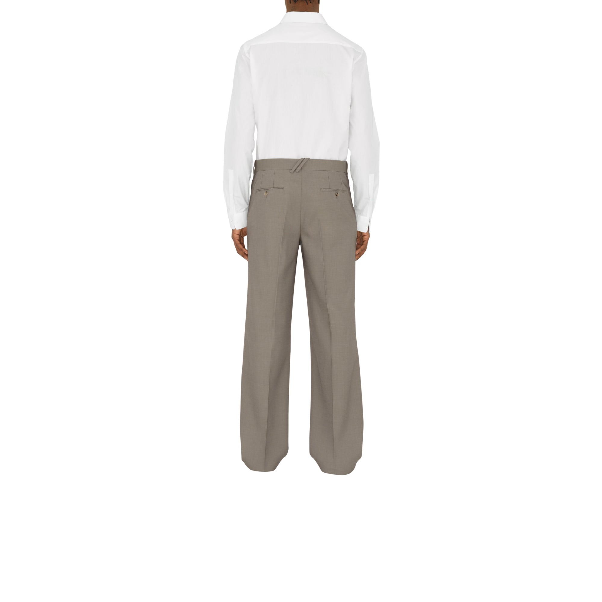 상품설명 : 이리데센트 울 소재로 이탈리아에서 제작된 팬츠. 아카이브에서 받은 영감을 바탕으로, 대비를 이루는 원사를 직조하여 각도에 따라 색상이 다르게 보이는 효과가 연출됨. 릴랙스핏 실루엣, 앞면의 플리츠 디테일 및 벨트 고리의 기마상 디자인(Equestrian Knight Design, EKD) 태그가 특징.##후크, 단추 및 지퍼 여밈#측면의 슬립 포켓, 뒷면의 단추 디테일 웰트 포켓#수선을 위해 밑단은 마감 처리되지 않음