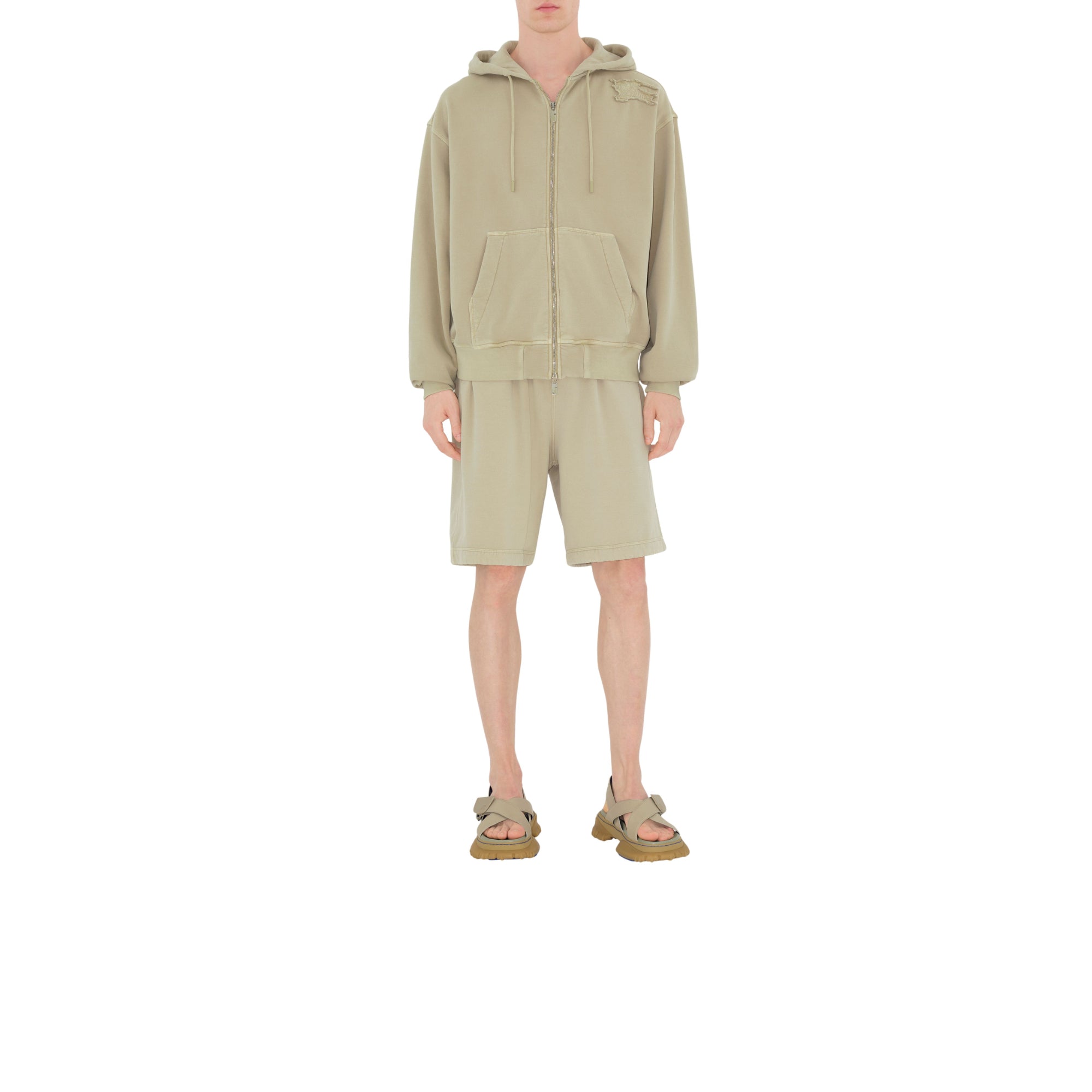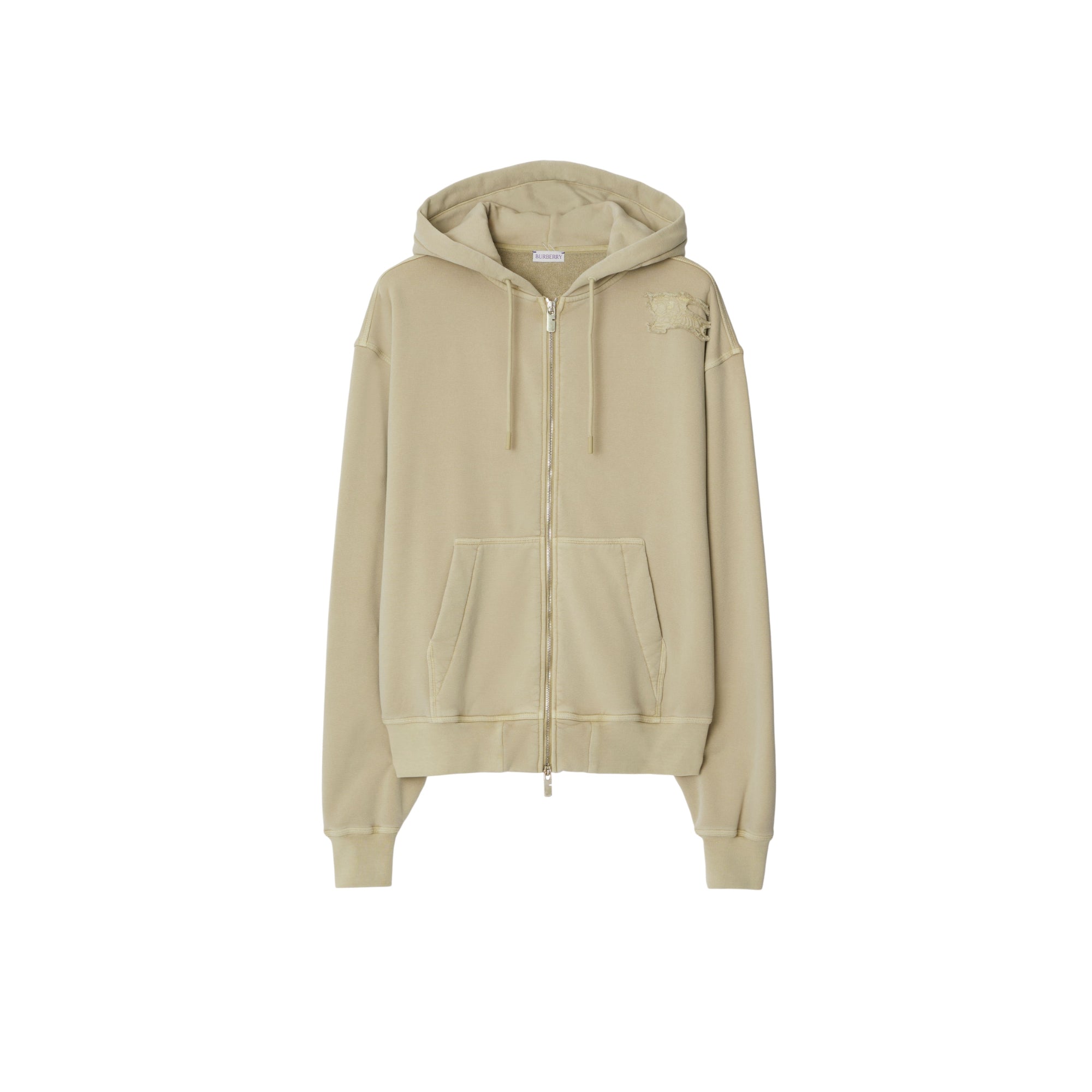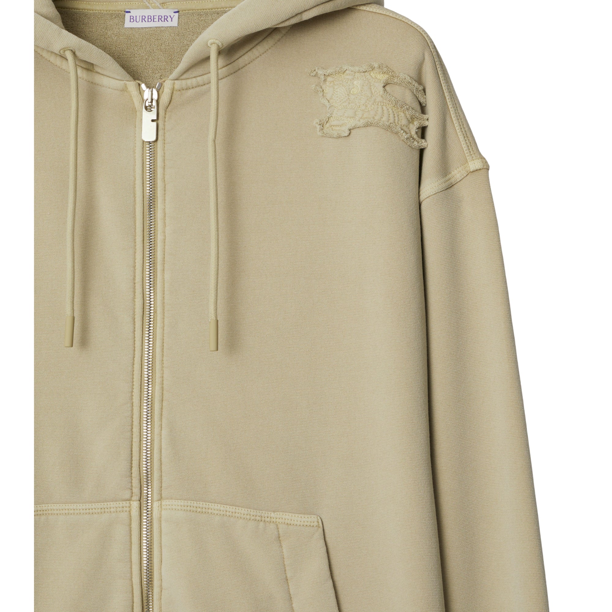 상품설명 : 탈색 효과가 연출된 면 타월링 혼방 소재의 오버사이즈핏 지퍼 후디. 가장자리가 시접 처리되지 않은 기마상 디자인(Equestrian Knight Design, EKD) 아플리케가 특징.##양방향 지퍼 여밈#드로스트링 후드#파우치 포켓#가슴의 기마상 디자인(Equestrian Knight Design, EKD) 아플리케
