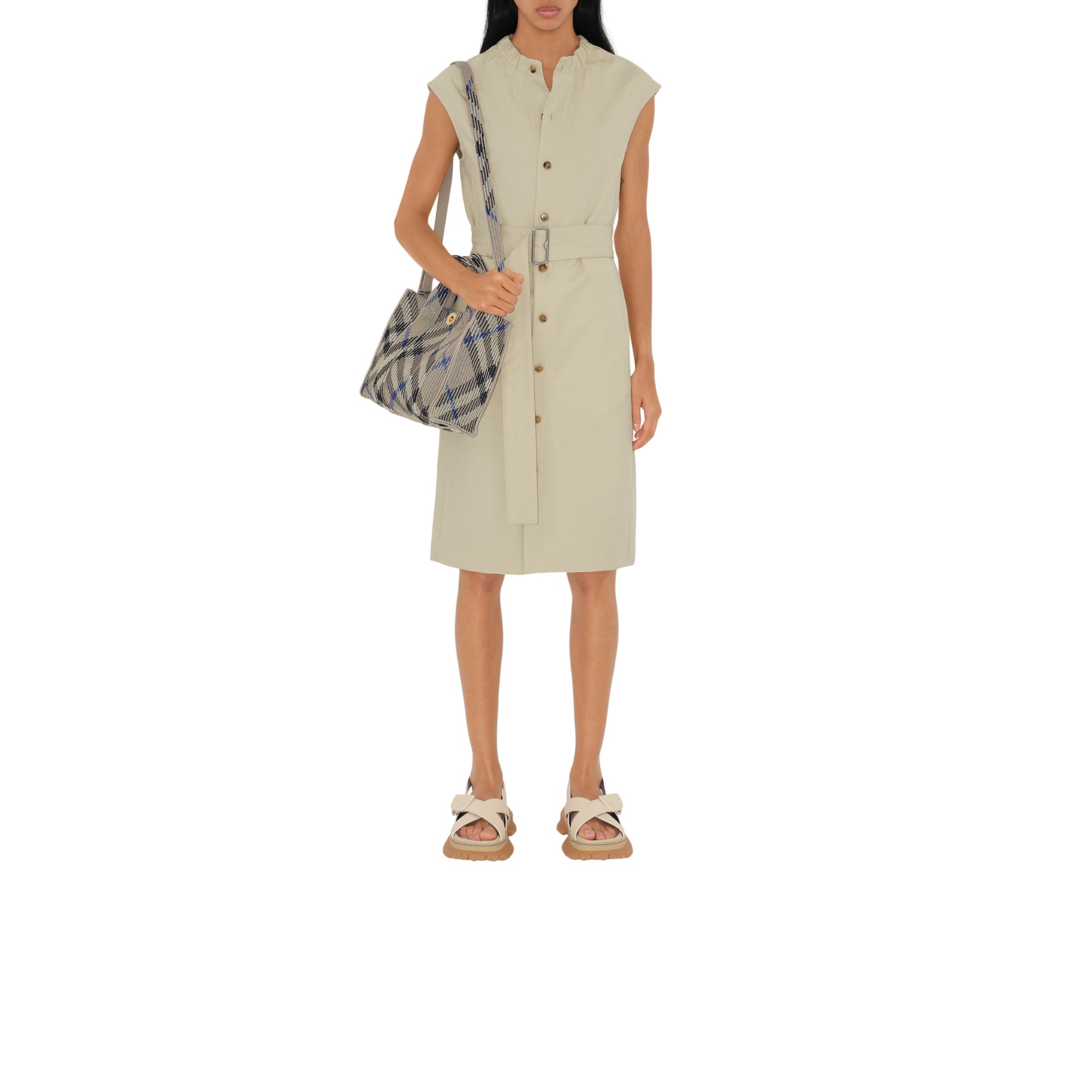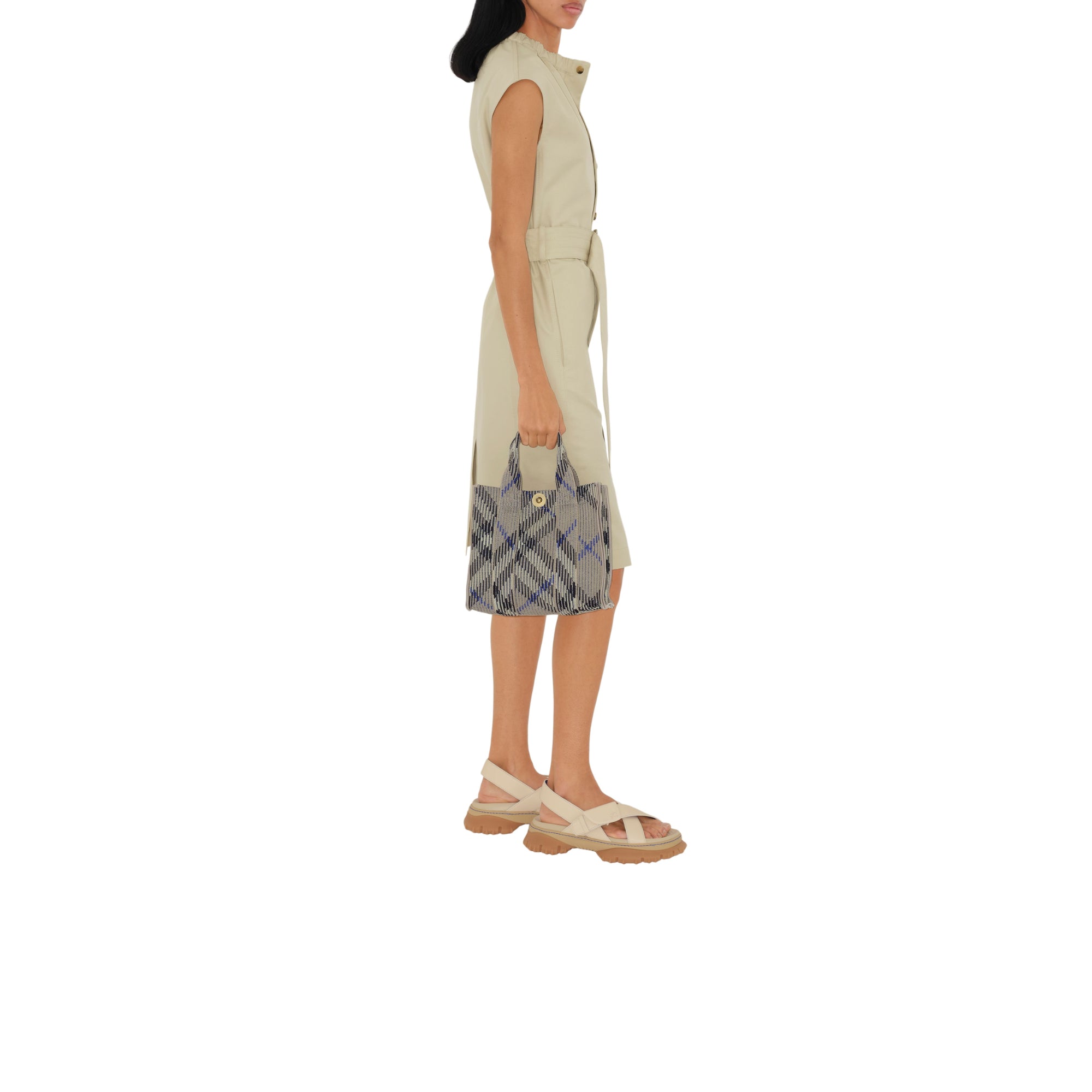 상품설명 : 버버리 체크가 연출된 소재로 이탈리아에서 제작된 구조적인 토트. 안감이 없는 경량 스타일이며, 기마상 디자인(Equestrian Knight Design, EKD)이 새겨진 스냅 단추 디테일이 특징.##탈착식 크로스바디 스트랩#스냅 단추 여밈#내부의 지퍼 포켓#브러시드 메탈 하드웨어#여밈의 음각 기마상 디자인(Equestrian Knight Design, EKD)#홑겹#더스트 백이 함께 제공됩니다.