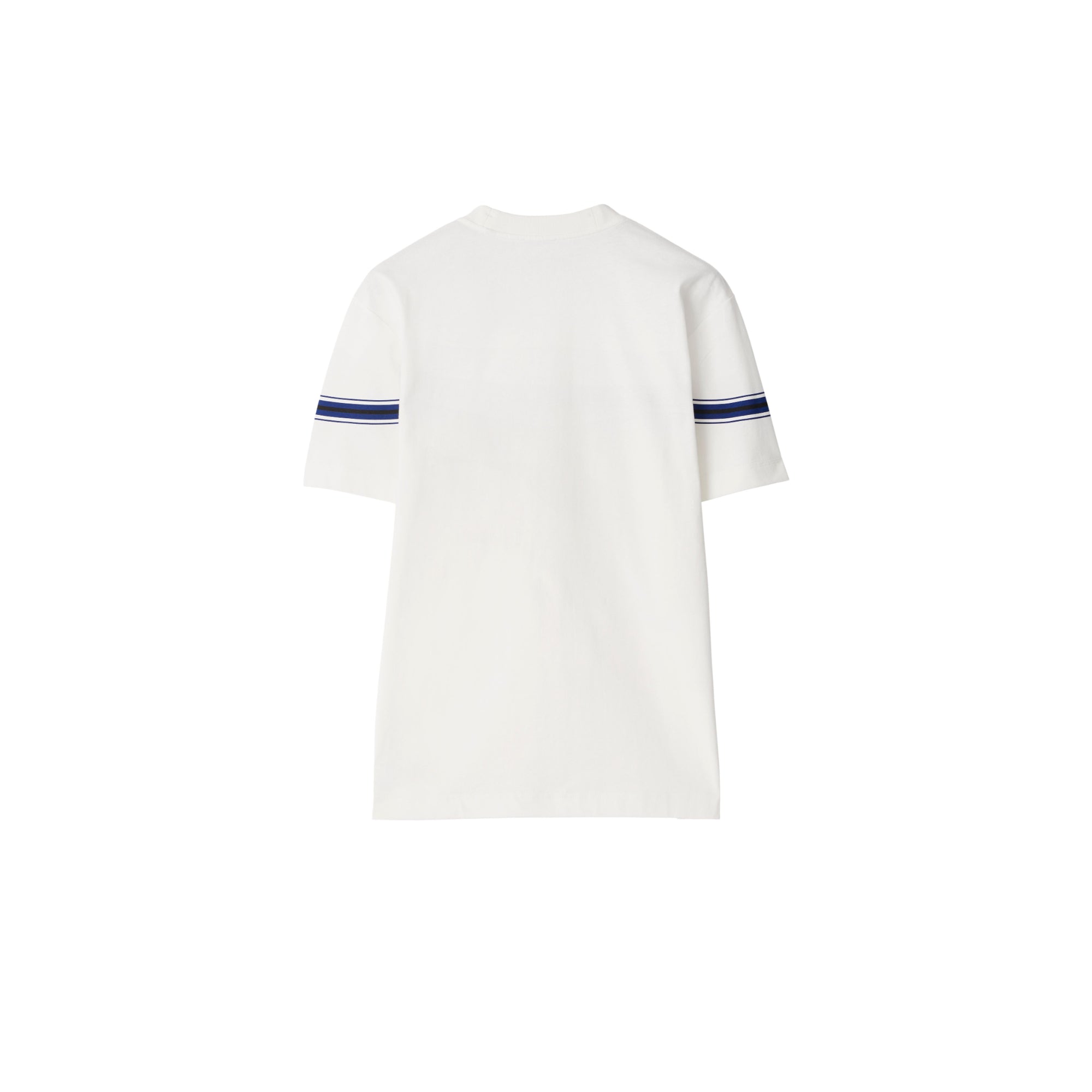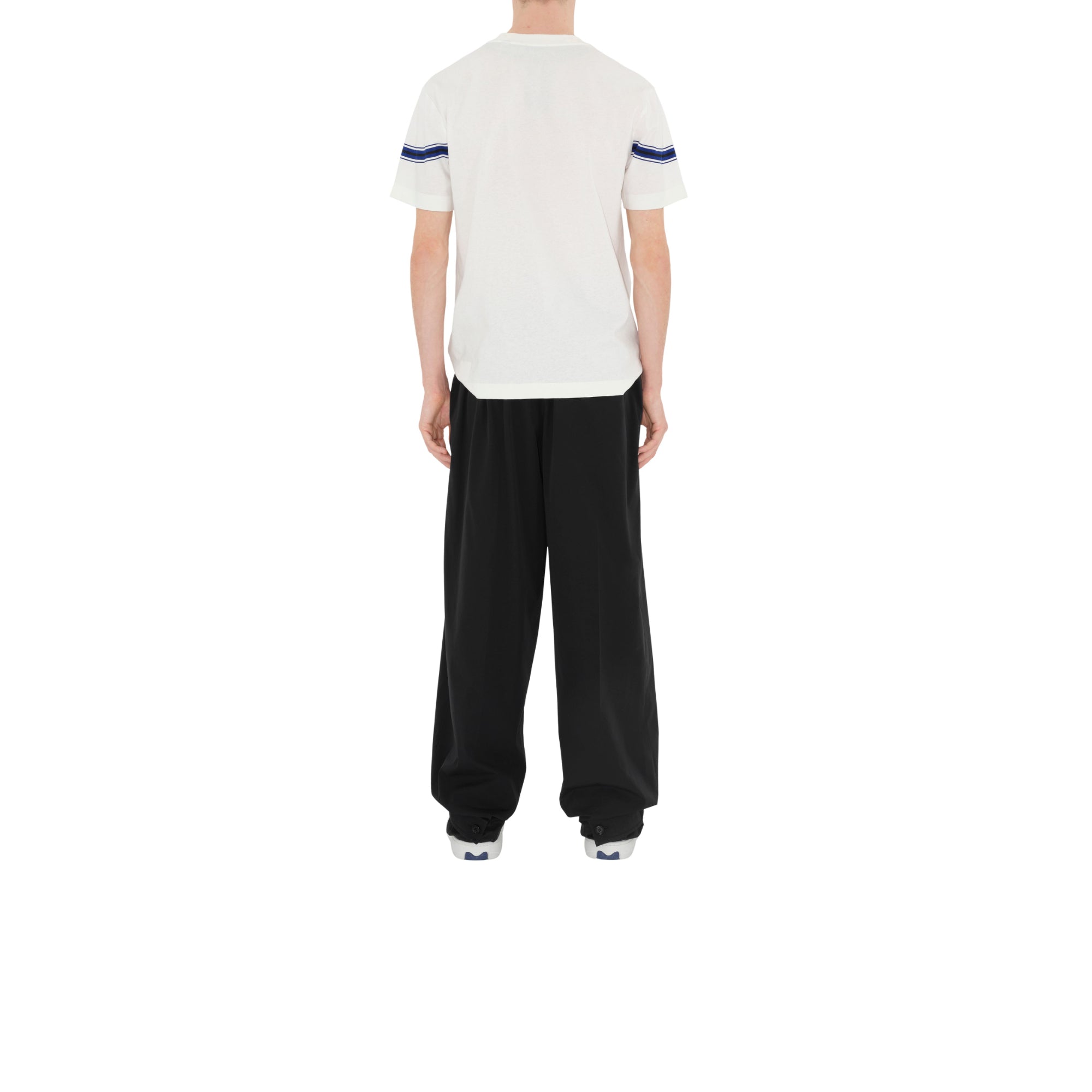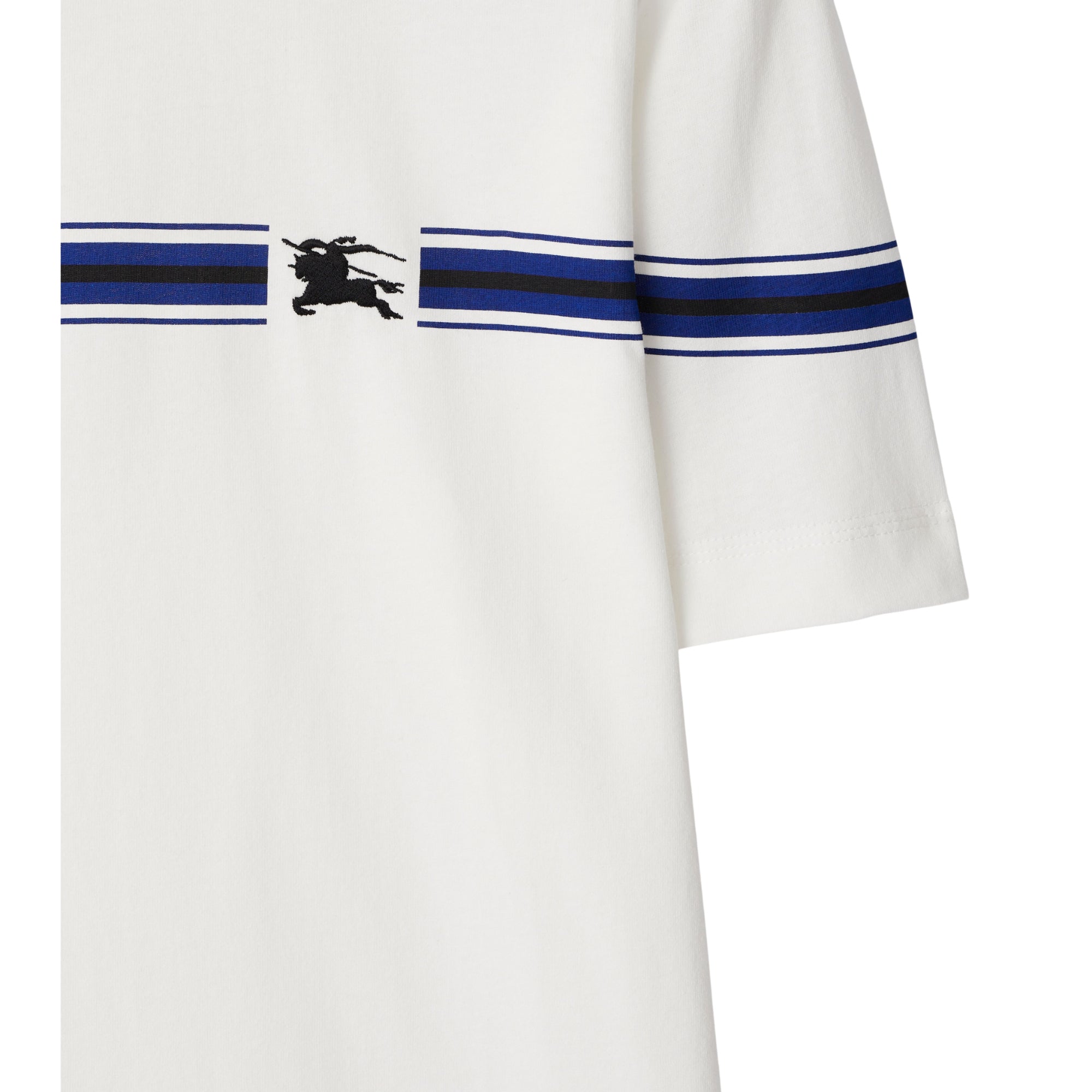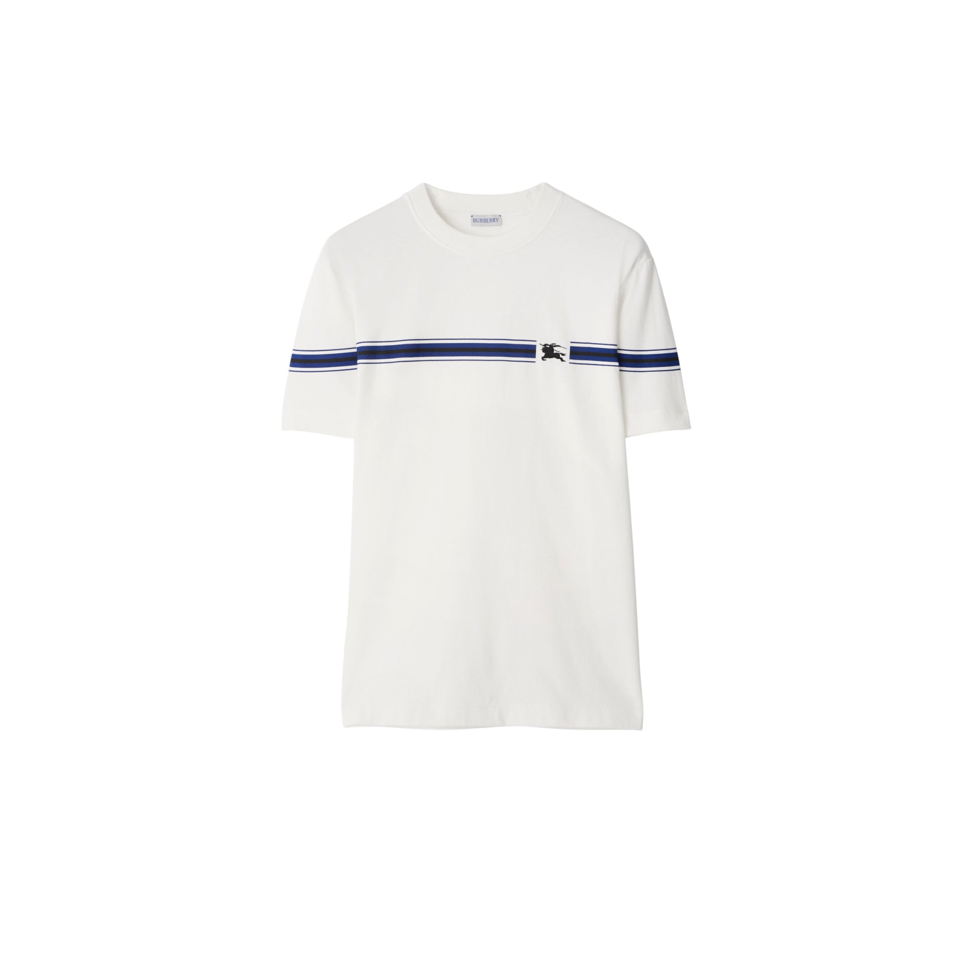 상품설명 : 스크린 프린트 기법으로 연출된 스트라이프와 기마상 디자인(Equestrian Knight Design, EKD) 자수가 돋보이는 면 저지 소재의 티셔츠. 크루넥 스타일 및 슬림핏 실루엣이 특징.##목선의 리브 짜임 디테일#가슴의 기마상 디자인(Equestrian Knight Design, EKD) 자수