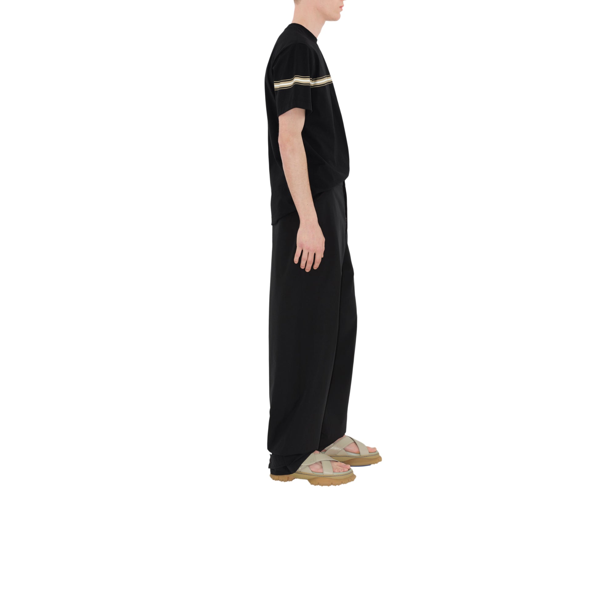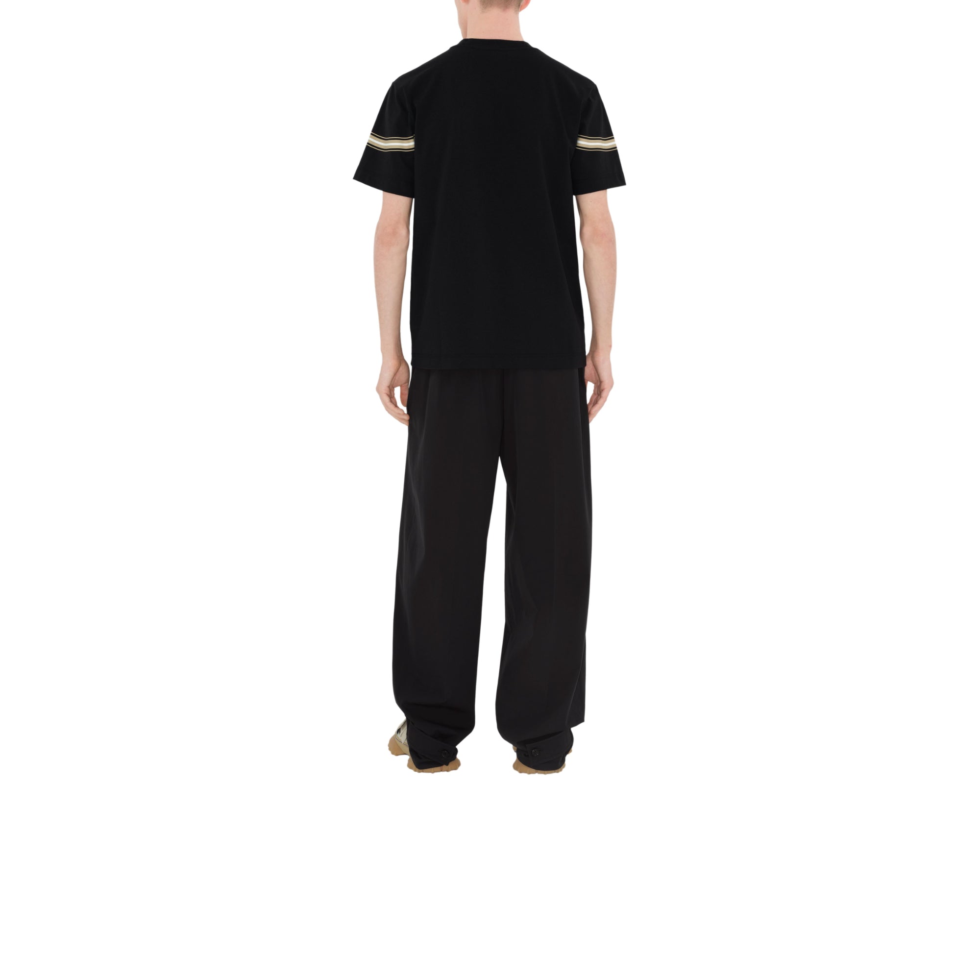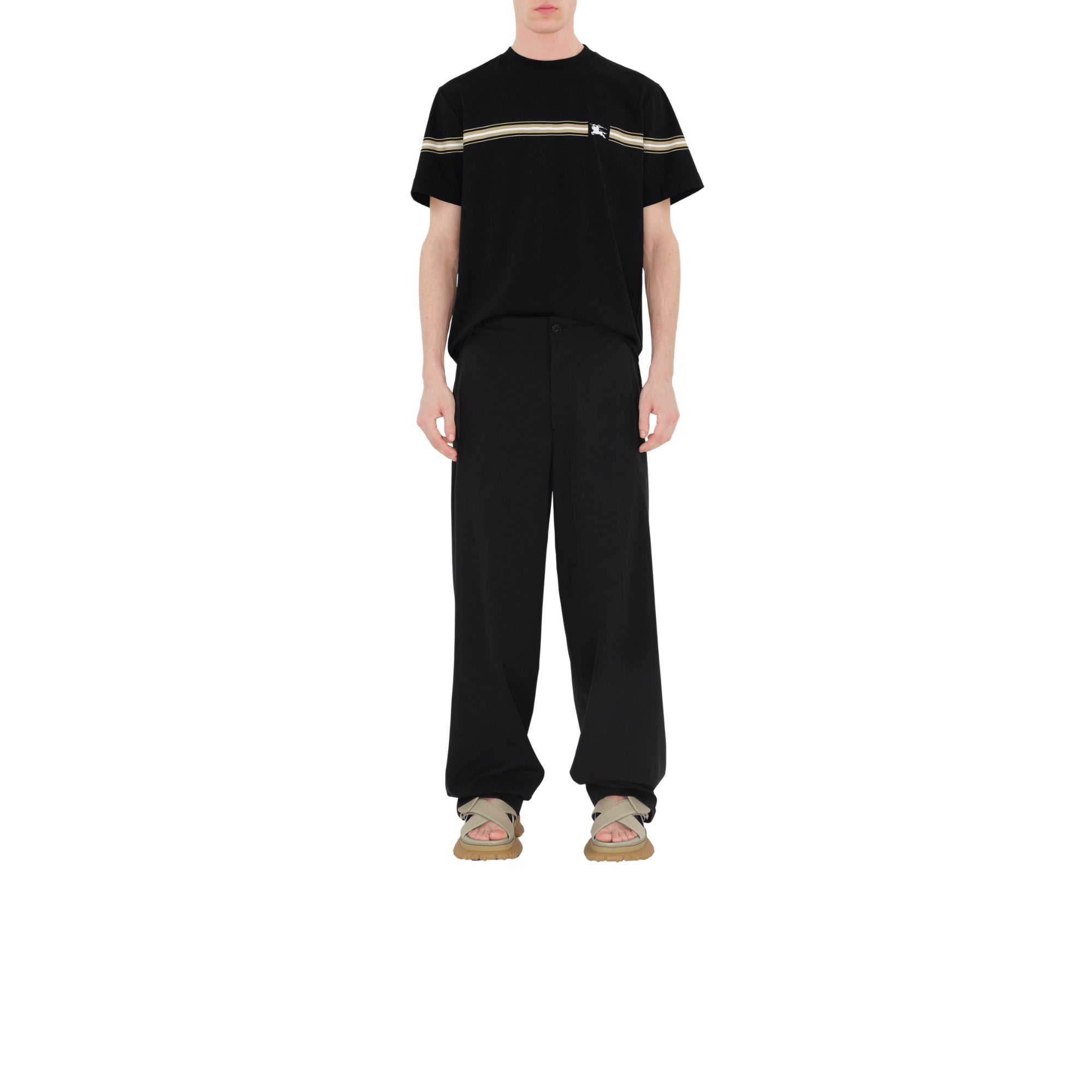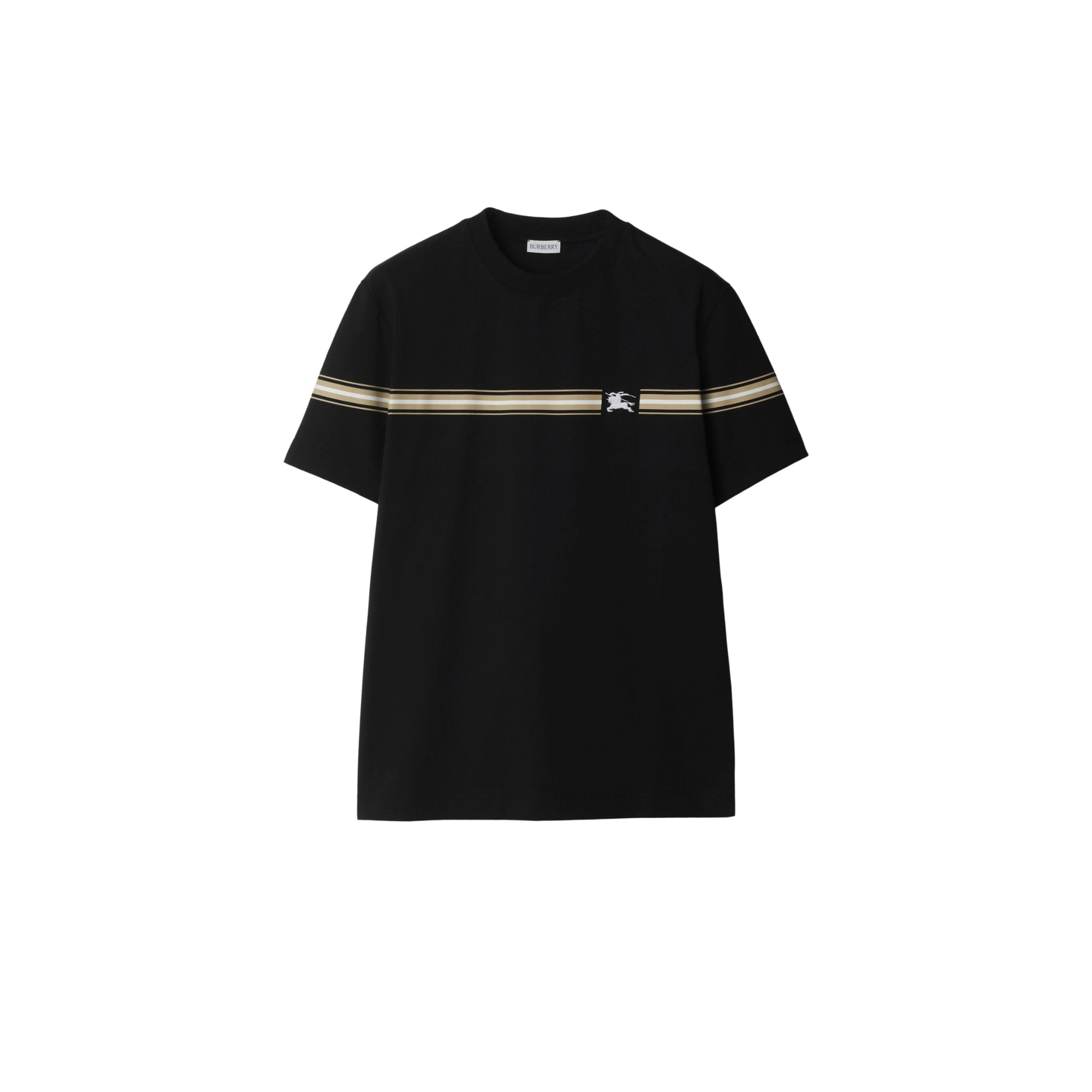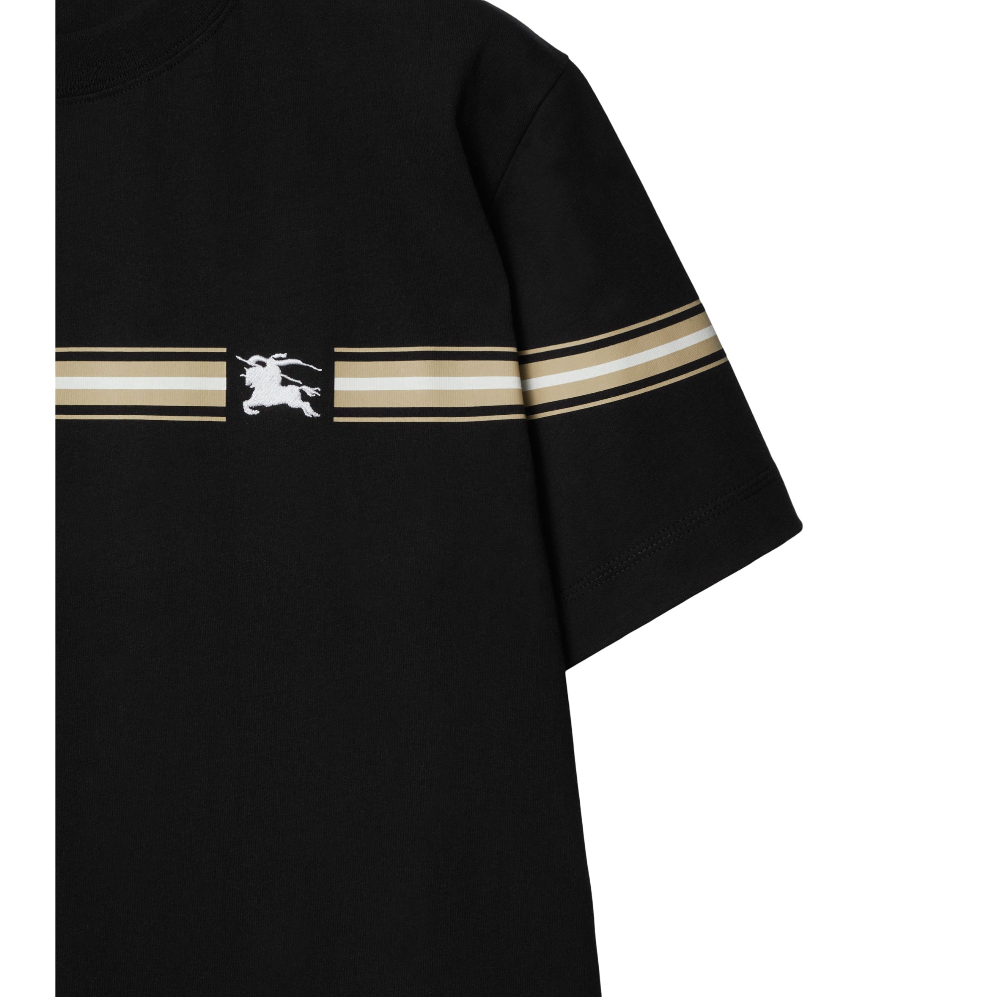 상품설명 : 면 저지 소재의 슬림핏 크루넥 티셔츠. 기마상 디자인(Equestrian Knight Design, EKD) 자수 및 스크린 프린트 기법으로 연출된 스트라이프가 특징.##목선의 리브 짜임 디테일#가슴의 기마상 디자인(Equestrian Knight Design, EKD) 자수