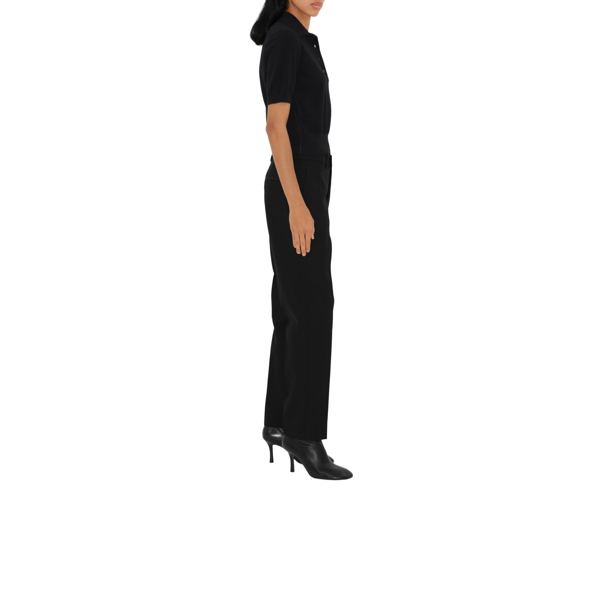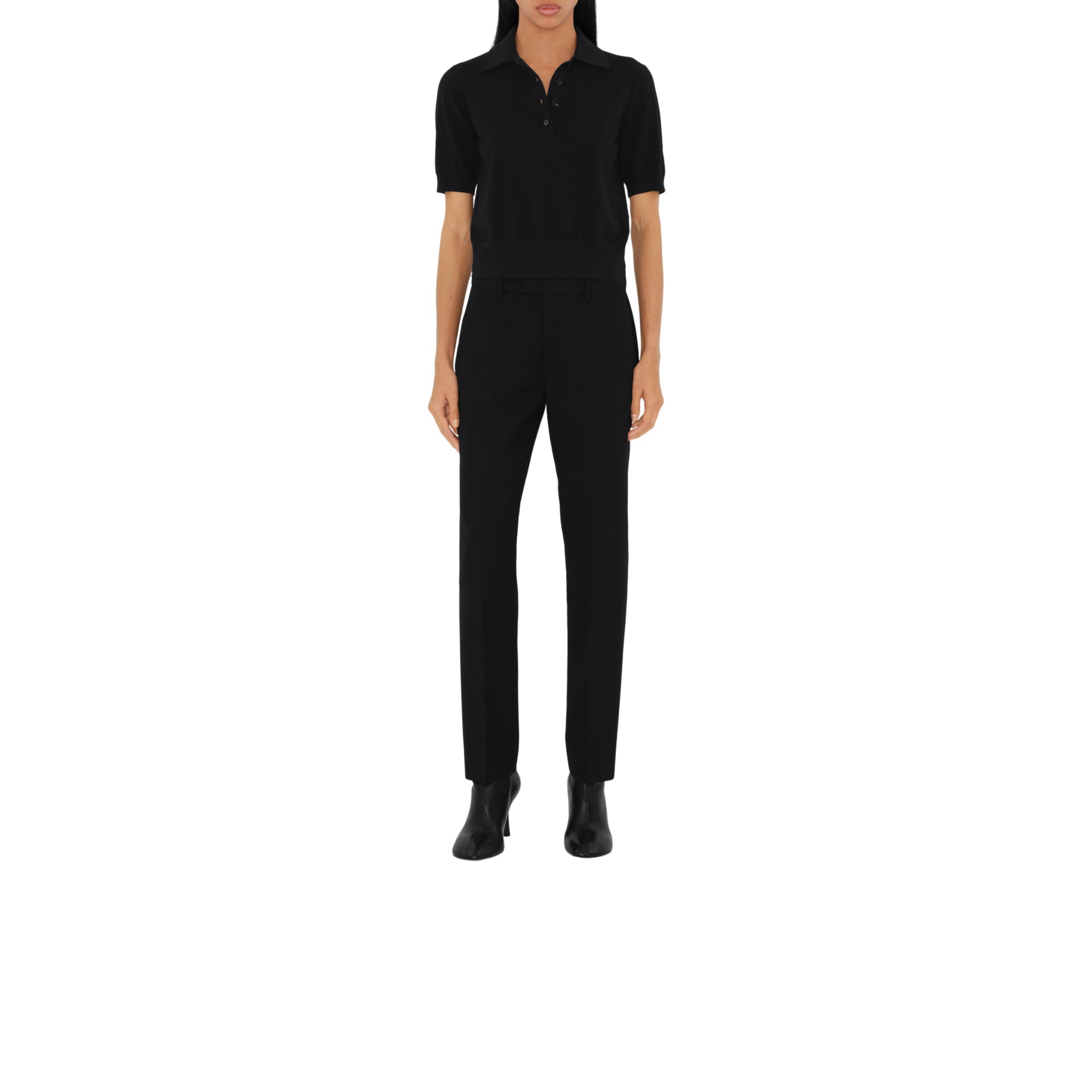 상품설명 : 신축성 있는 면 혼방 소재의 경량 크레이프 폴로셔츠. 이탈리아에서 제작된 슬림핏 아이템이며, 어깨 부분의 펀칭 디테일 기마상 디자인(Equestrian Knight Design, EKD)이 특징.##플래킷의 단추 디테일#앞면의 기마상 디자인(Equestrian Knight Design, EKD)
