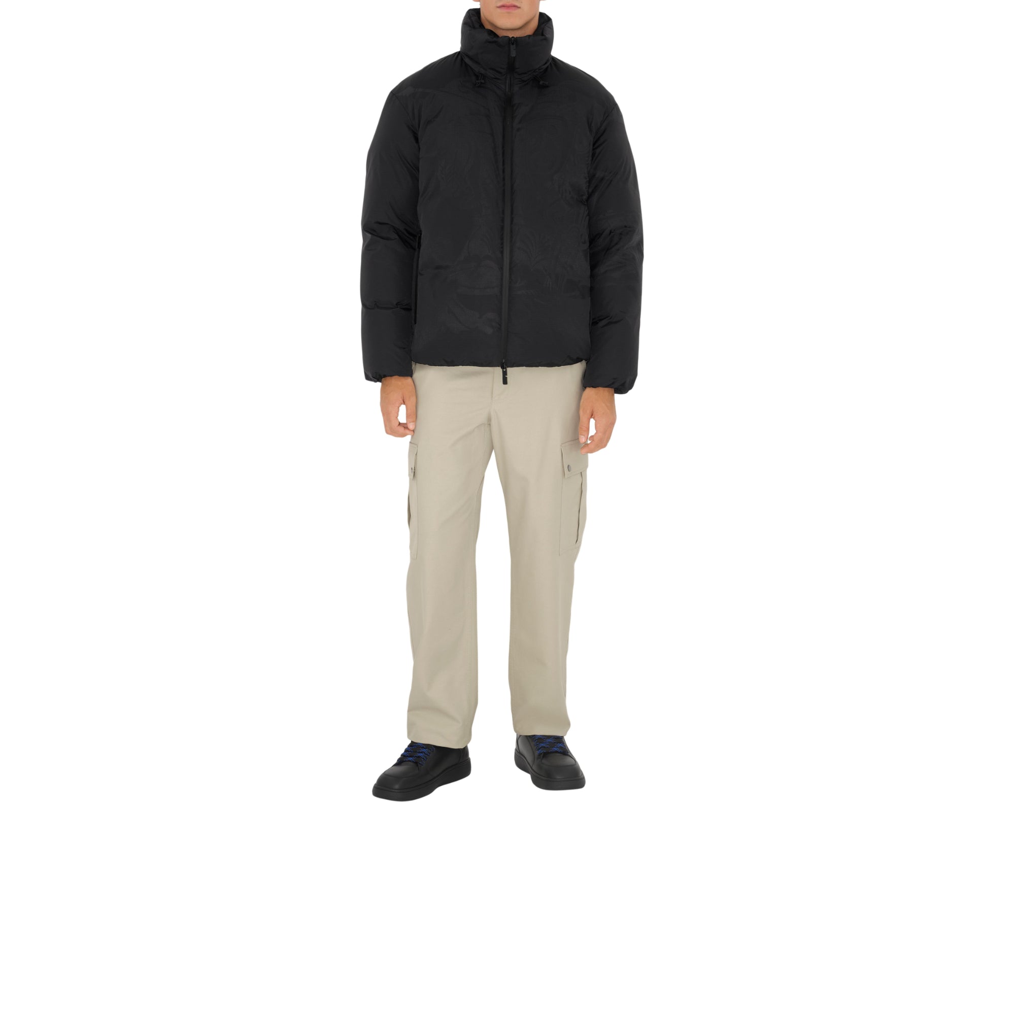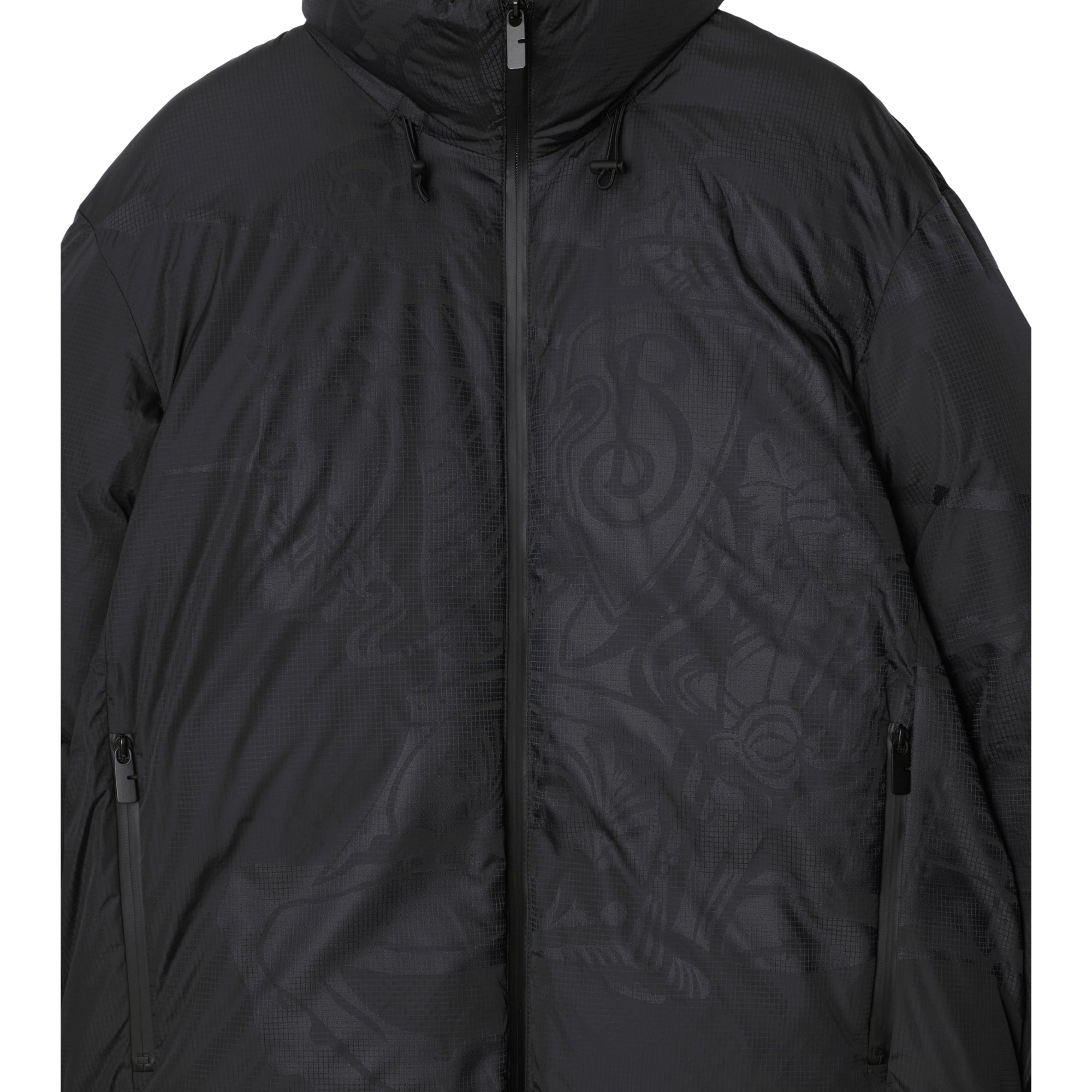 상품설명 : 거위 솜털과 깃털로 충전된 립스탑 나일론 소재의 퍼퍼 재킷. 필 쿠페 기법으로 연출된 기마상 디자인(Equestrian Knight Design, EKD) 및 오버사이즈핏 실루엣이 특징.##양방향 지퍼 여밈#탈착식 드로스트링 후드#측면의 지퍼 포켓#밑단의 드로스트링#신축성 있는 커프스