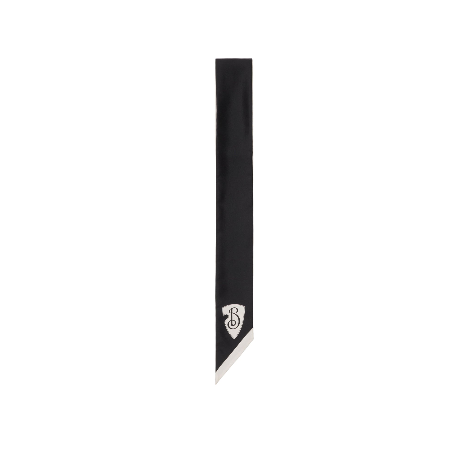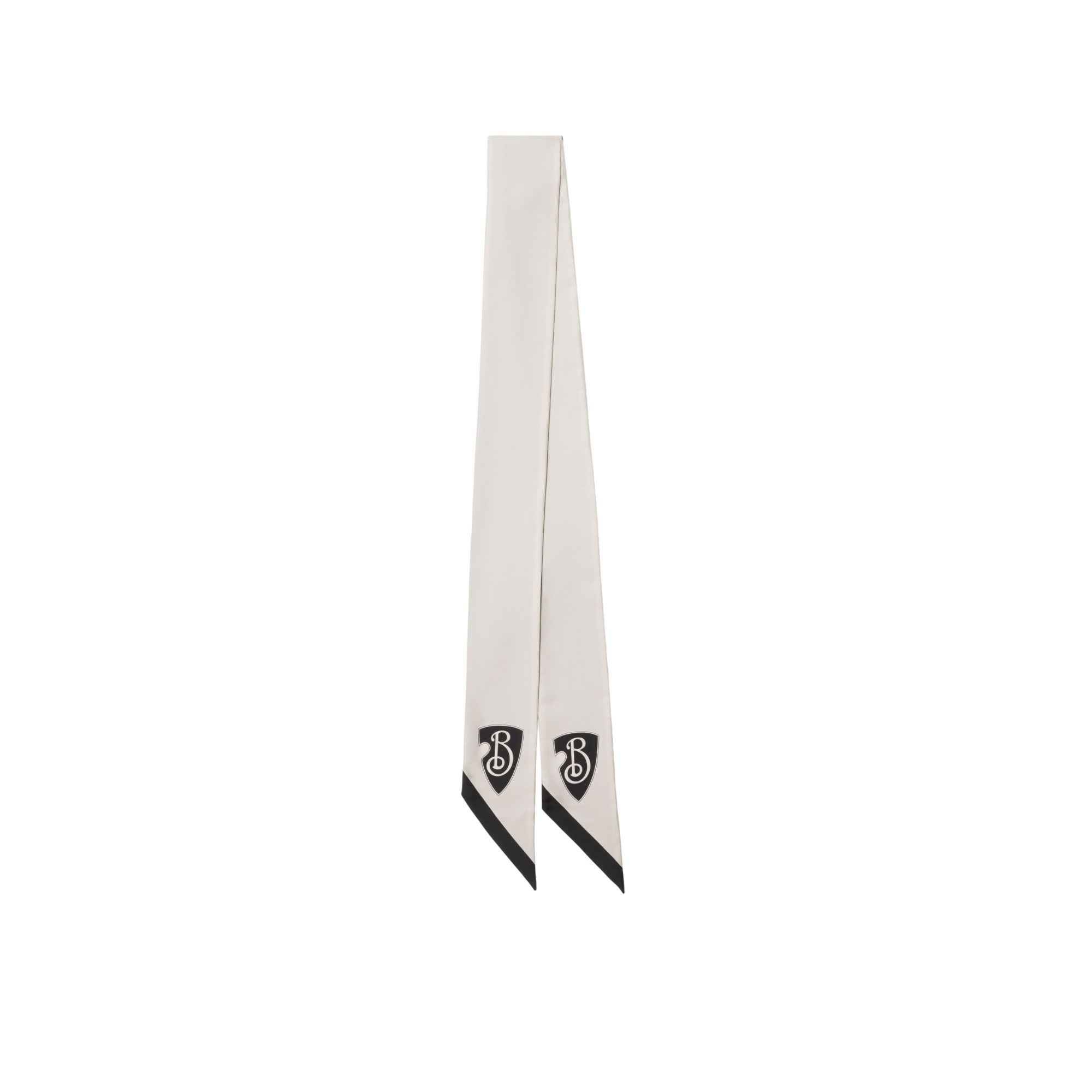 상품설명 : 실크 트윌 소재로 이탈리아에서 제작된 스키니 스카프. 버버리 기마상 디자인(Equestrian Knight Design, EKD)에서 영감을 받은 B 쉴드 모티프가 프린트된 양면 아이템.##좁아지는 실루엣의 양 끝부분