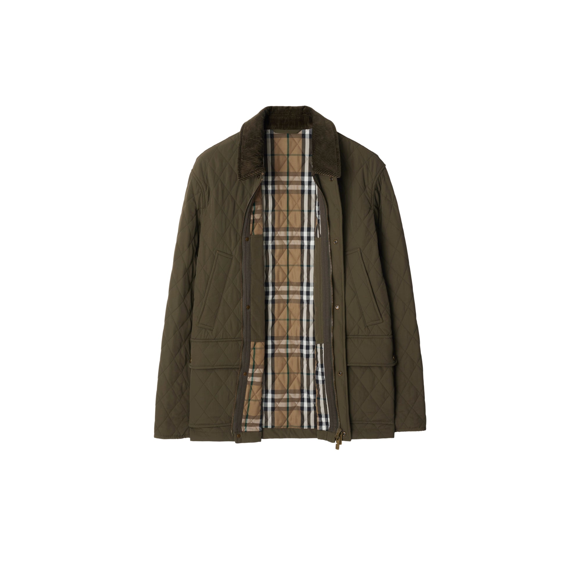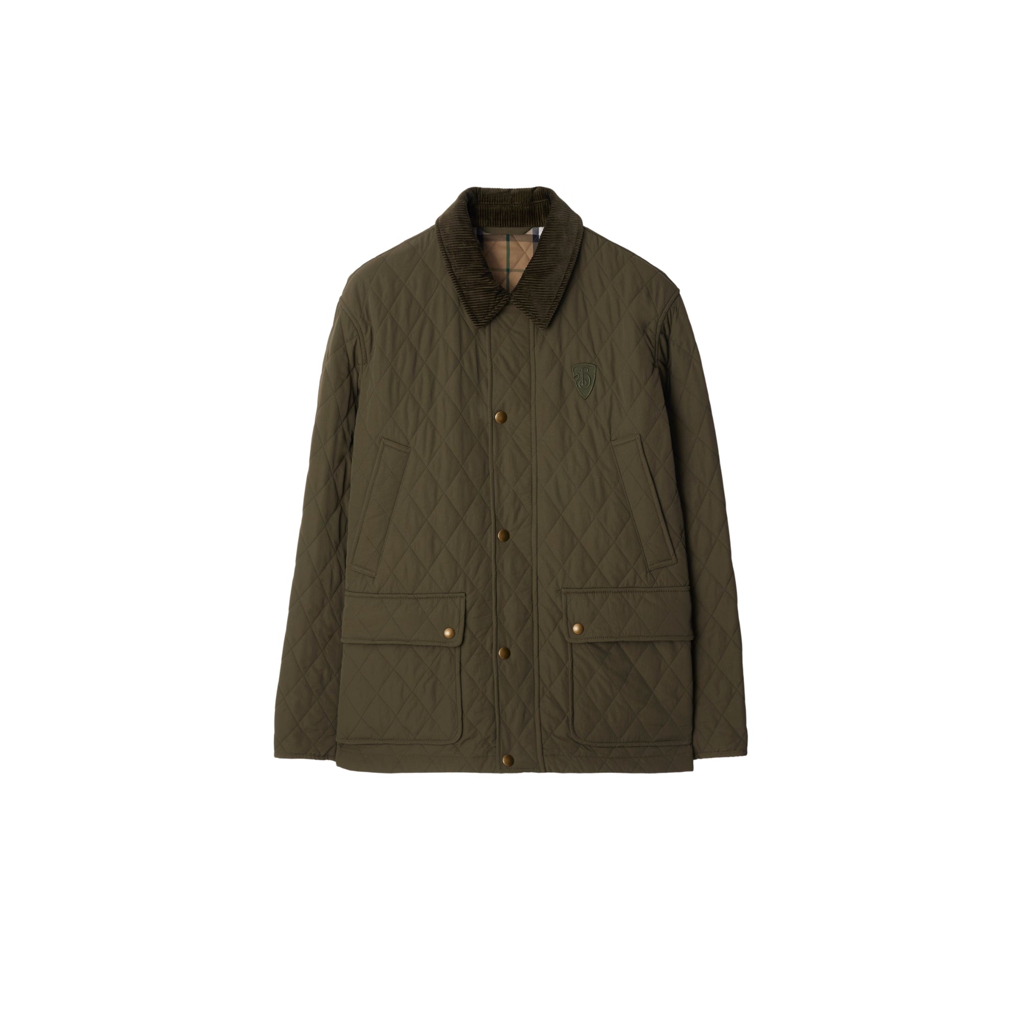 상품설명 : 토널 색상의 코듀로이 칼라와 B 쉴드 아플리케가 돋보이는 나일론 소재의 퀼팅 반 재킷. 레귤러핏 실루엣 및 버버리 체크 안감이 특징. 버버리만의 특별한 감각으로 재해석된 머스트 해브 아이템을 선보이는 버버리 클래식 에디션 제품.##양방향 지퍼 및 스냅 단추 여밈#스롯 래치#가슴의 웰트 포켓, 측면의 스냅 단추 디테일 플랩 포켓#스냅 단추 디테일의 커프스#안감과 밑깃의 버버리 체크#가슴의 B 쉴드 아플리케