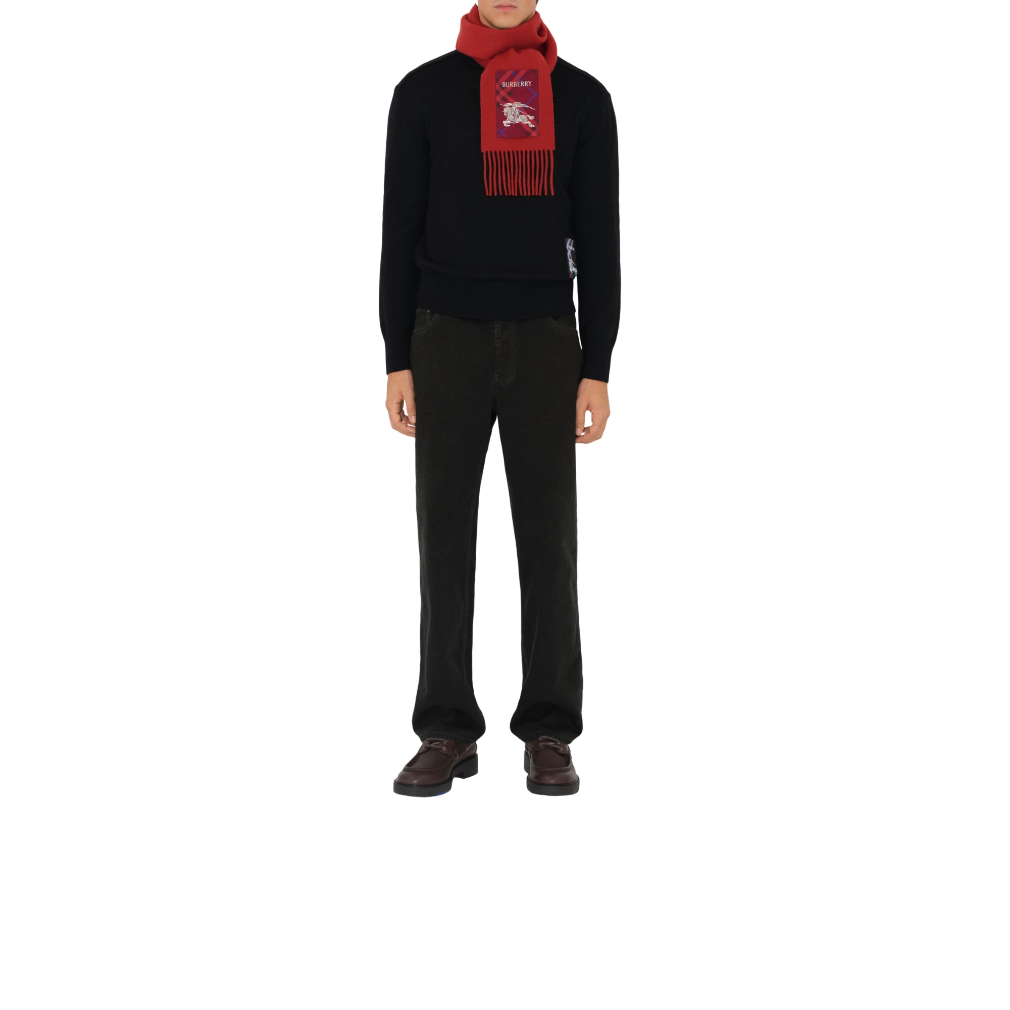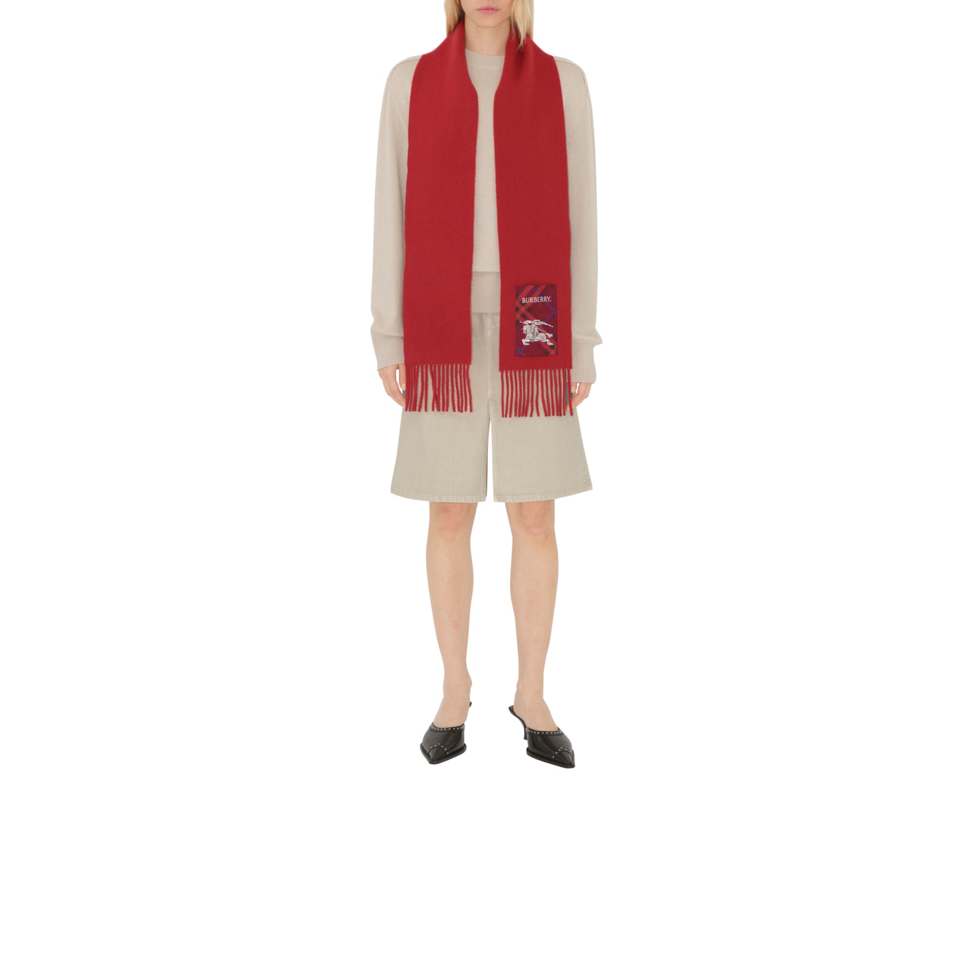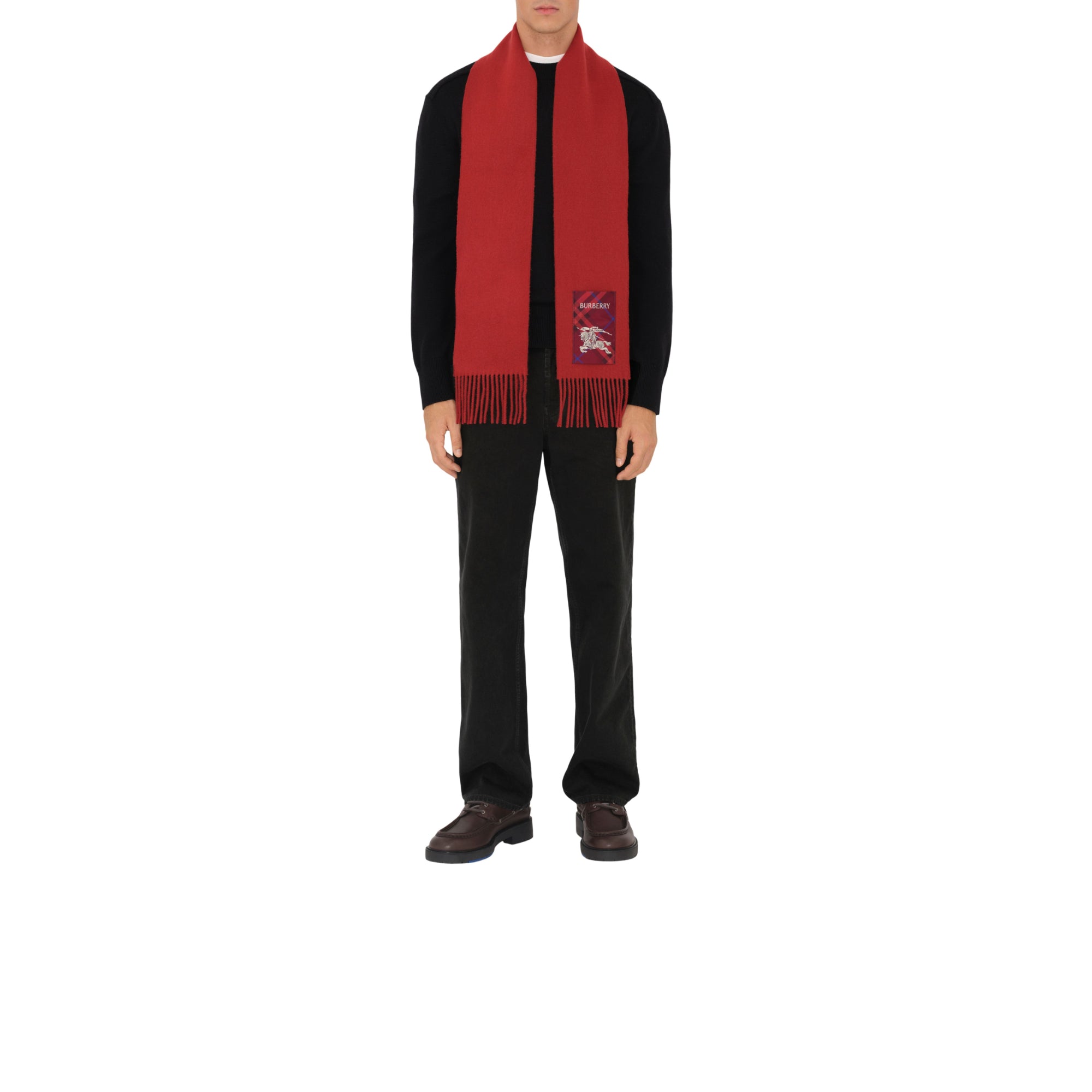 상품설명 : 1797년 설립된 스코틀랜드 직물 공장에서 제작된 캐시미어 스카프. 전통 베틀로 직조된 원단을 현지의 천연수로 세척한 후 두 차례 추가 워싱 처리하여 매우 부드럽고 풍성한 촉감이 특징. 버버리 시그니처 트렌치코트의 라벨이 재해석된 스타일이며 버버리 체크, 로고 및 기마상 디자인(Equestrian Knight Design, EKD)이 연출된 패치 아플리케가 특별함을 더하는 아이템.##직사각형#양 가장자리의 프린지 디테일#버버리 체크 라벨 아플리케