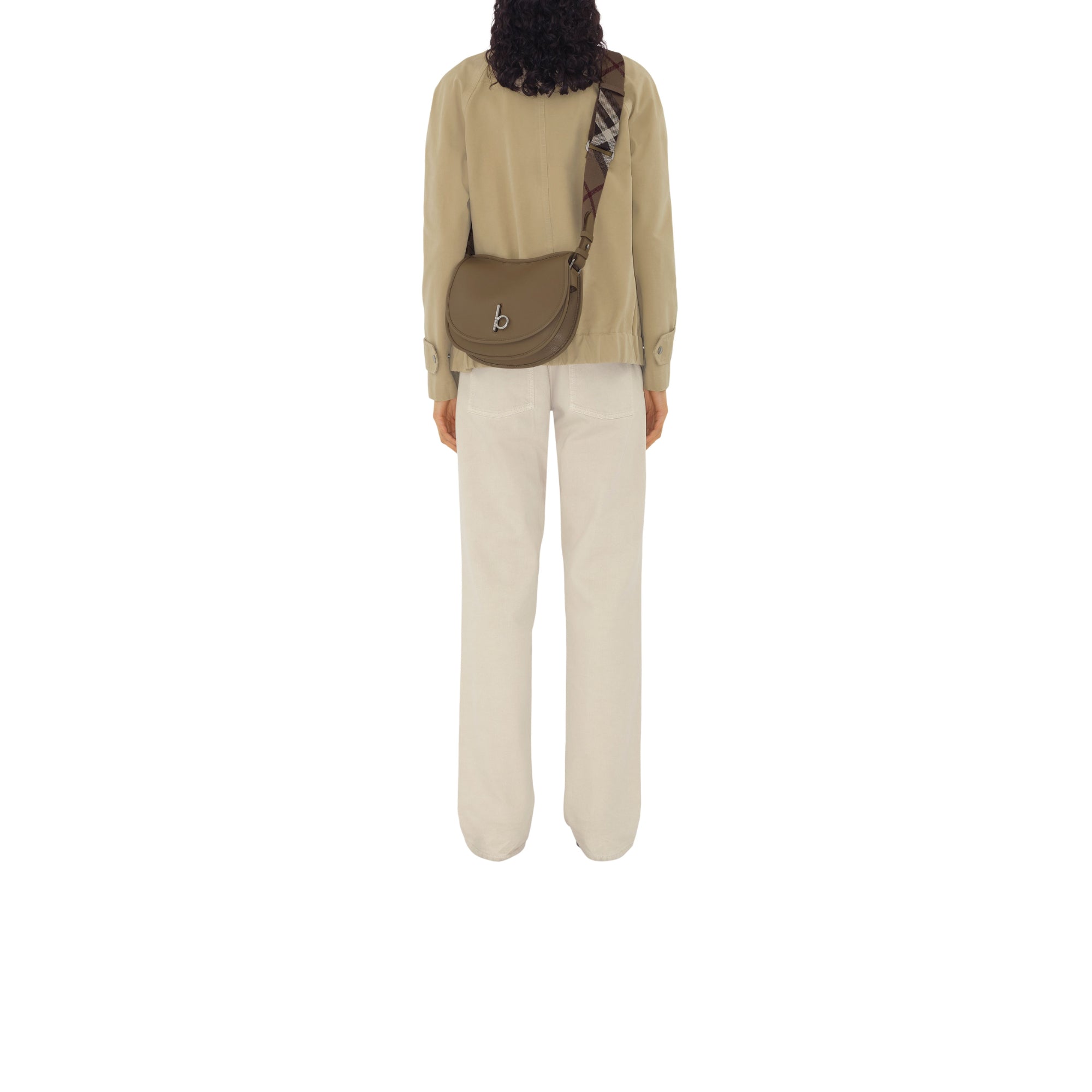상품설명 : 그레이니 송아지 가죽 소재로 이탈리아에서 제작된 구조적인 사첼. 말 안장 스타일의 곡선 실루엣과 아치형 측면 및 스웨이드 안감이 특징. 버버리 시그니처 b 디테일을 돌려 플랩을 여밀 수 있으며 버버리 체크 스트랩을 조절해 숄더 백 또는 크로스바디 백으로 착용 가능.##조절 가능한 탈착식 웨빙 스트랩#접이식 플랩의 b 모양 여밈#외부의 슬립 포켓#수작업으로 마감칠된 테두리#브러시드 메탈 하드웨어#뒷면의 엠보싱 기마상 디자인(Equestrian Knight Design, EKD)#스웨이드 안감#더스트 백이 함께 제공됩니다.