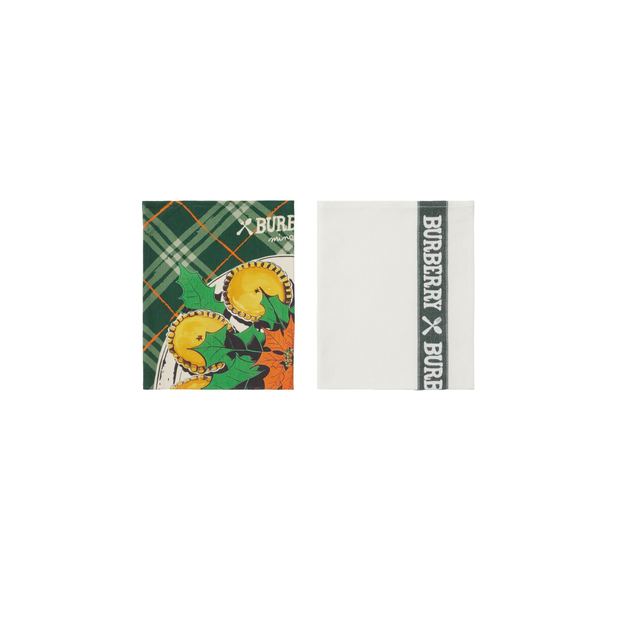 상품설명 : 리넨 면 소재로 이탈리아에서 제작된 티 타월 2피스 세트. 수작업으로 그린 후 프린트된 아트워크에는 페스티브 시즌에 즐겨 먹는 영국의 민스 파이와 그 레시피가 버버리 체크를 배경으로 연출됨. 다른 한 피스는 플레인 디자인으로 로고 배너, 포크 및 스푼 모티프가 특징.##직사각형