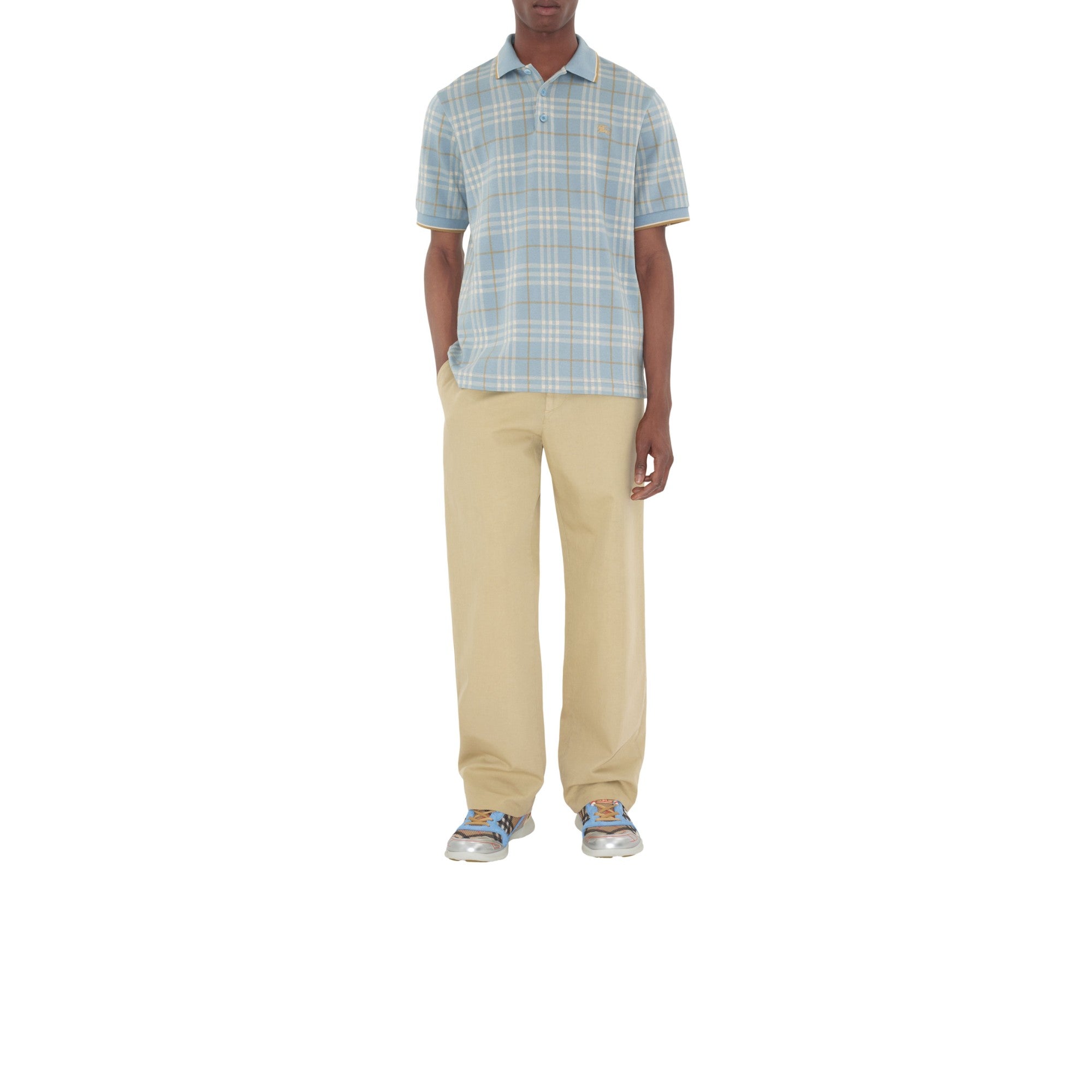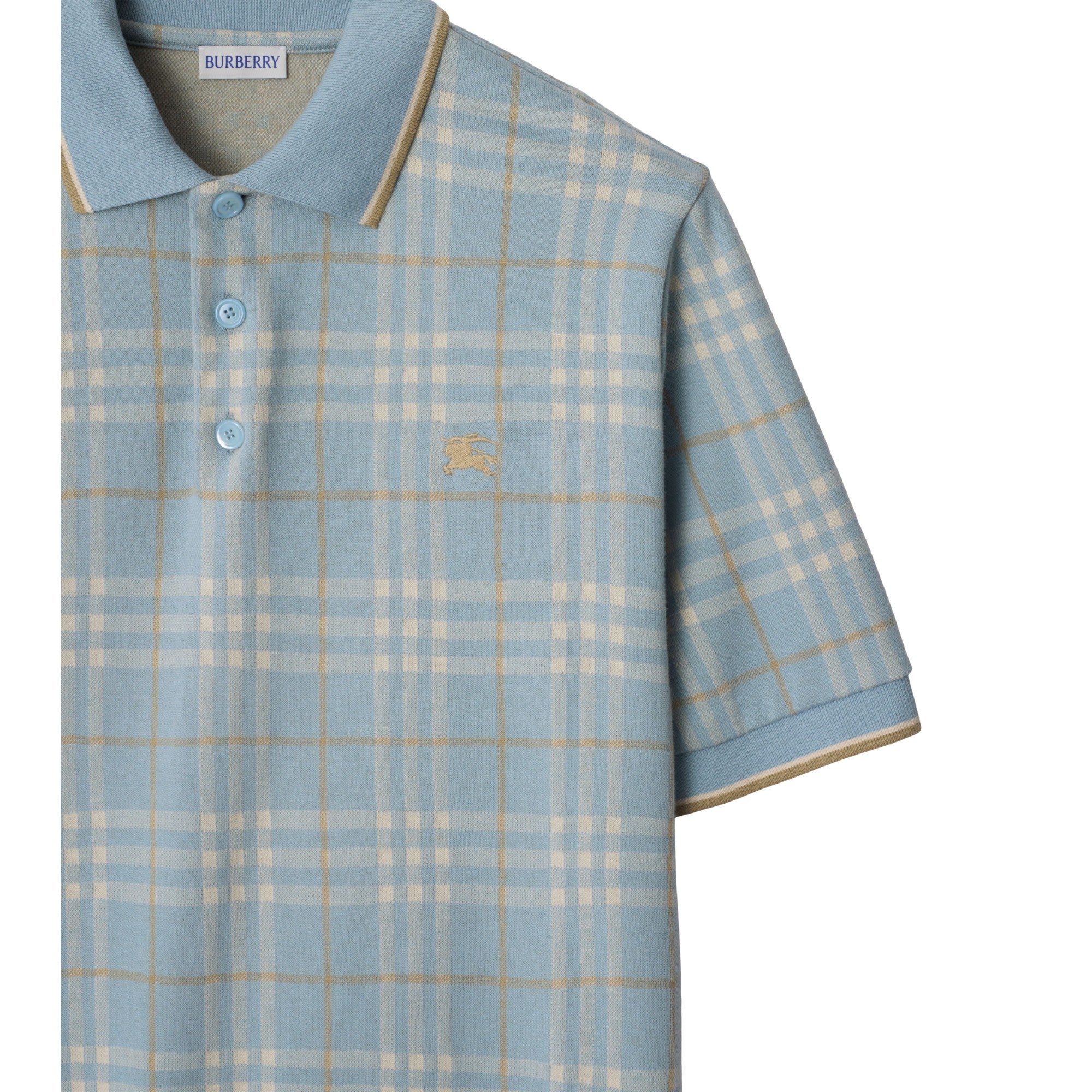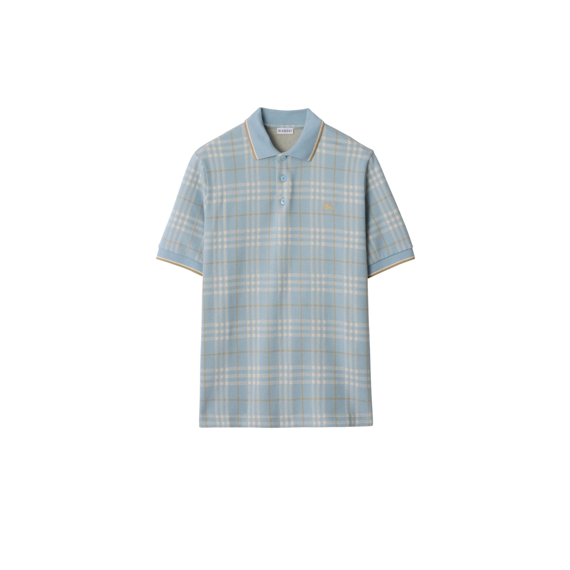 상품설명 : 자카드직 버버리 체크가 연출된 면 소재의 폴로셔츠. 릴랙스핏 실루엣과 기마상 디자인(Equestrian Knight Design, EKD) 자수가 특징.##플래킷의 단추 디테일#가슴의 기마상 디자인(Equestrian Knight Design, EKD) 자수