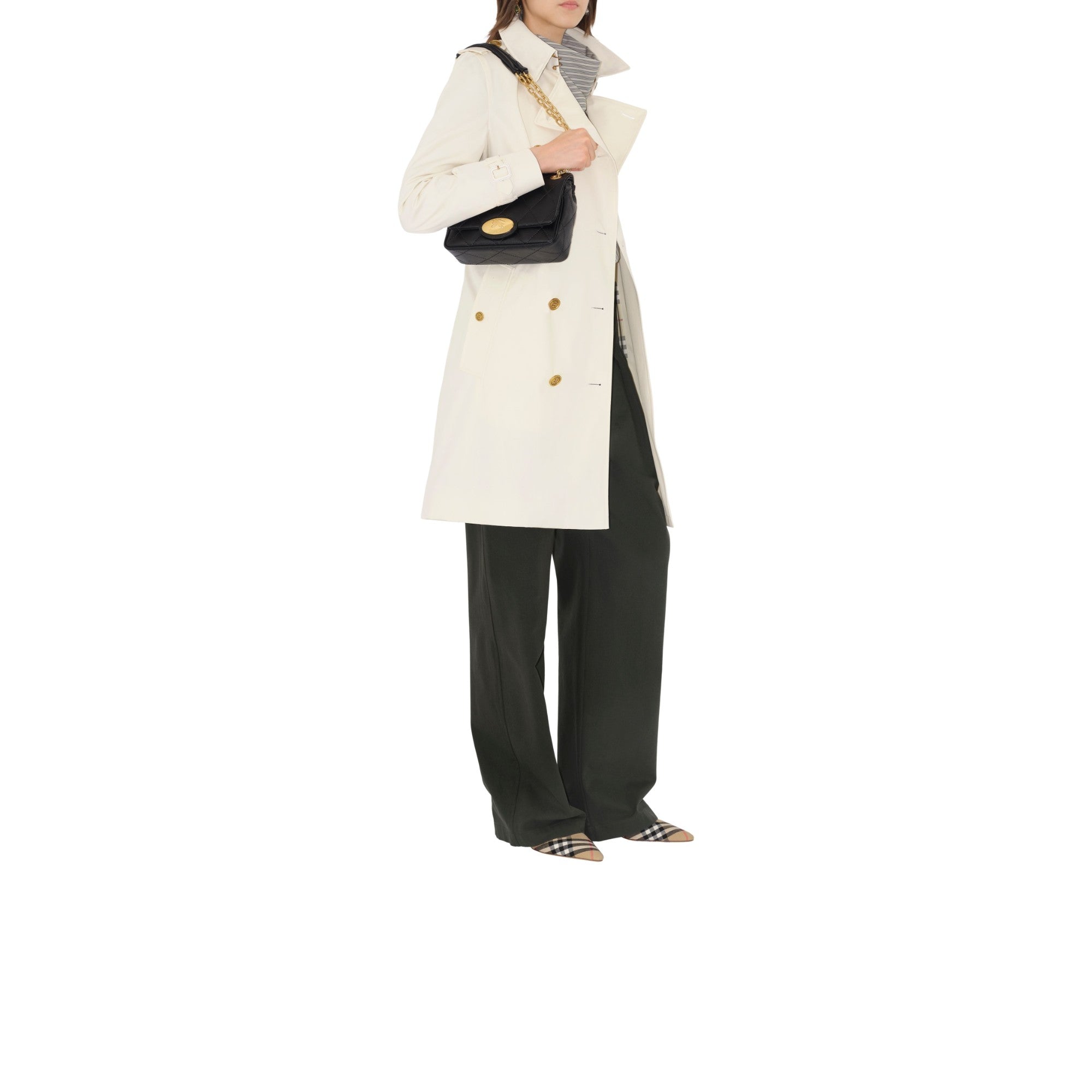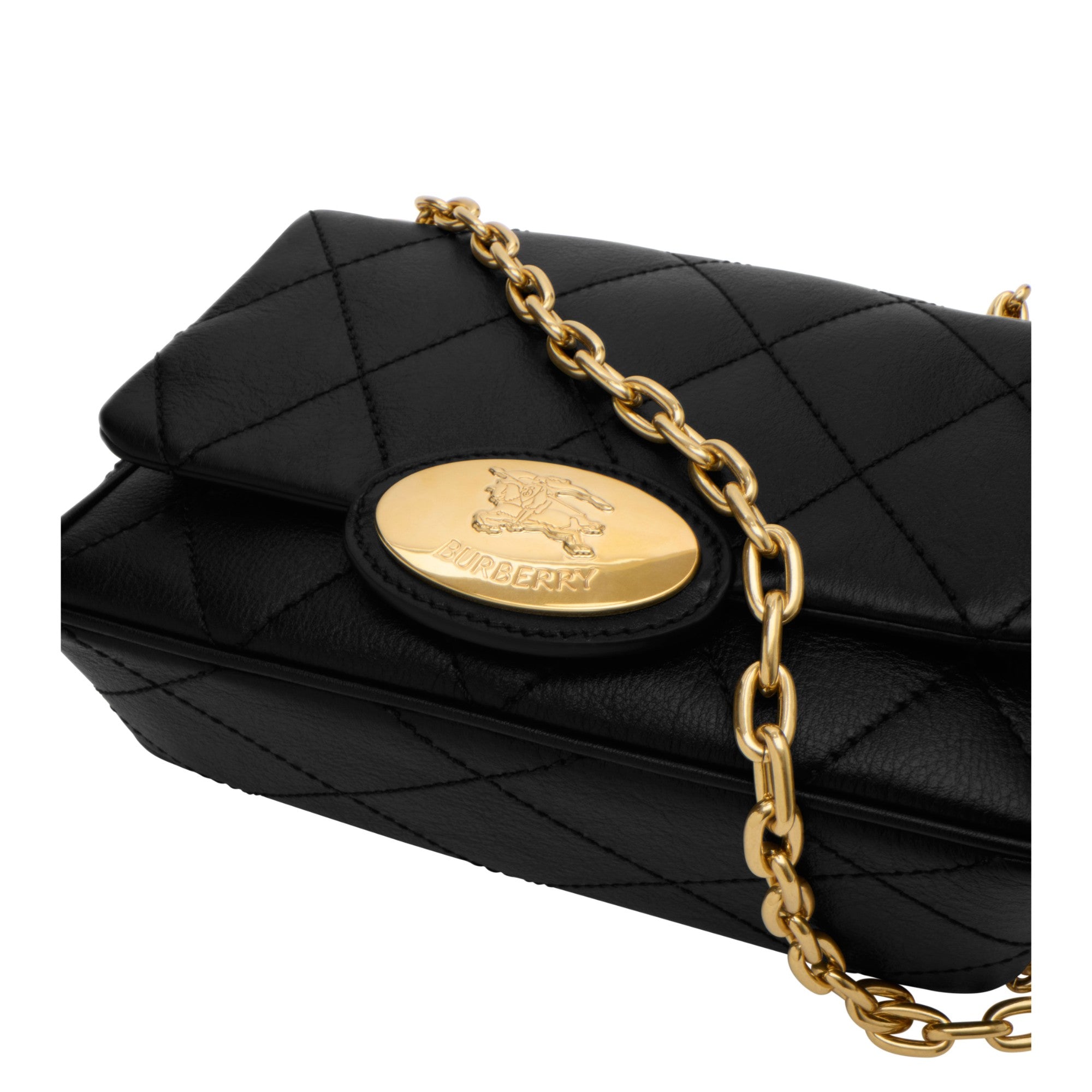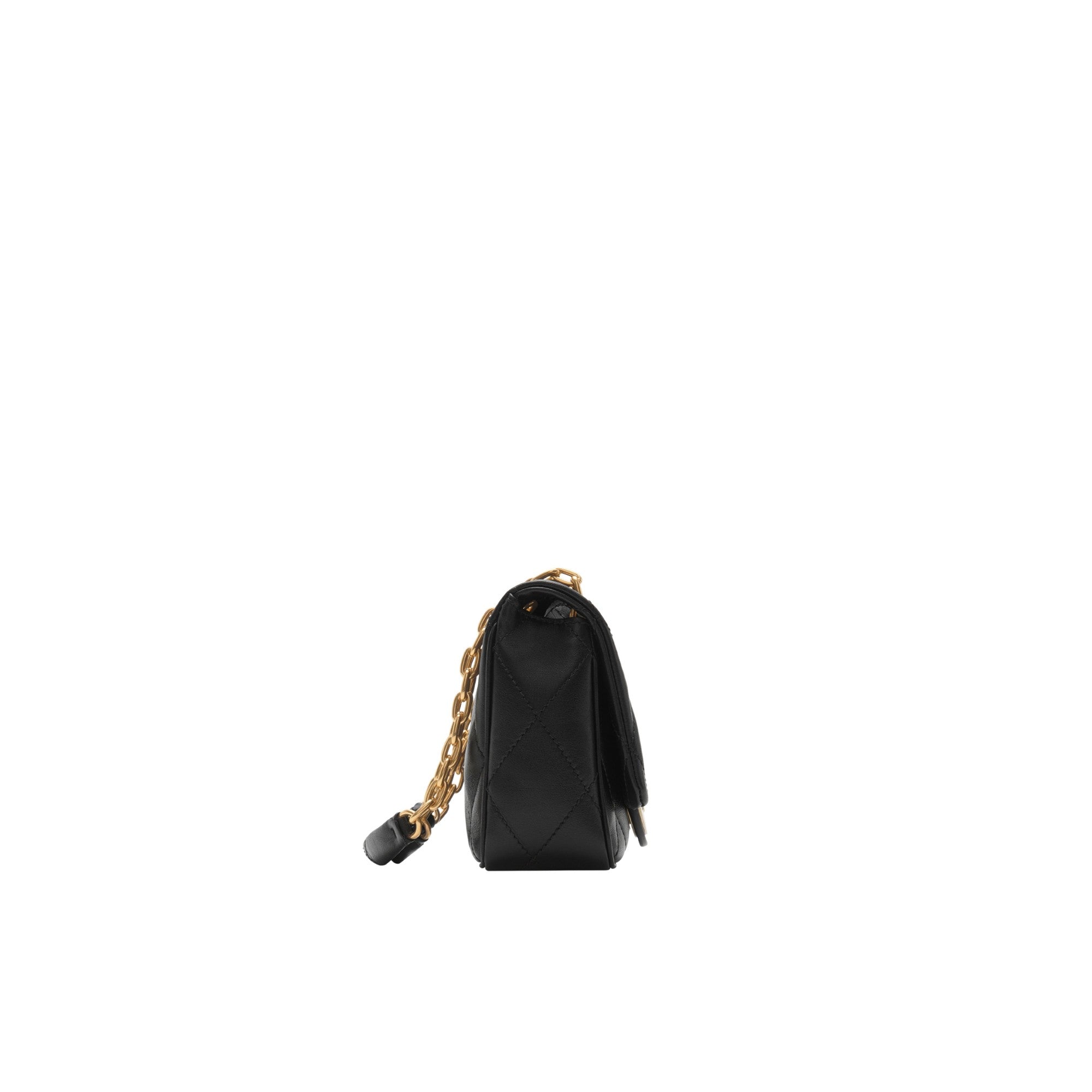 상품설명 : 퀼팅 송아지 가죽 소재로 이탈리아에서 제작된 클래식한 가방. 부드럽고 독특한 질감이 특징. 1980년대 버버리 가방에서 처음 소개된 아카이브 모티프인 나이트 스탬프가 금속 디테일로 연출된 컴팩트한 아이템. 경량 체인 및 가죽 스트랩을 사용해 크로스바디 또는 숄더 백으로 착용 가능.##체인 및 가죽 스트랩#자석 여밈의 접이식 플랩#내부의 지퍼 포켓#수작업으로 마감칠된 테두리#브러시드 메탈 하드웨어#앞면의 음각 기마상 디자인(Equestrian Knight Design, EKD)#면 안감#더스트 백이 함께 제공됩니다.
