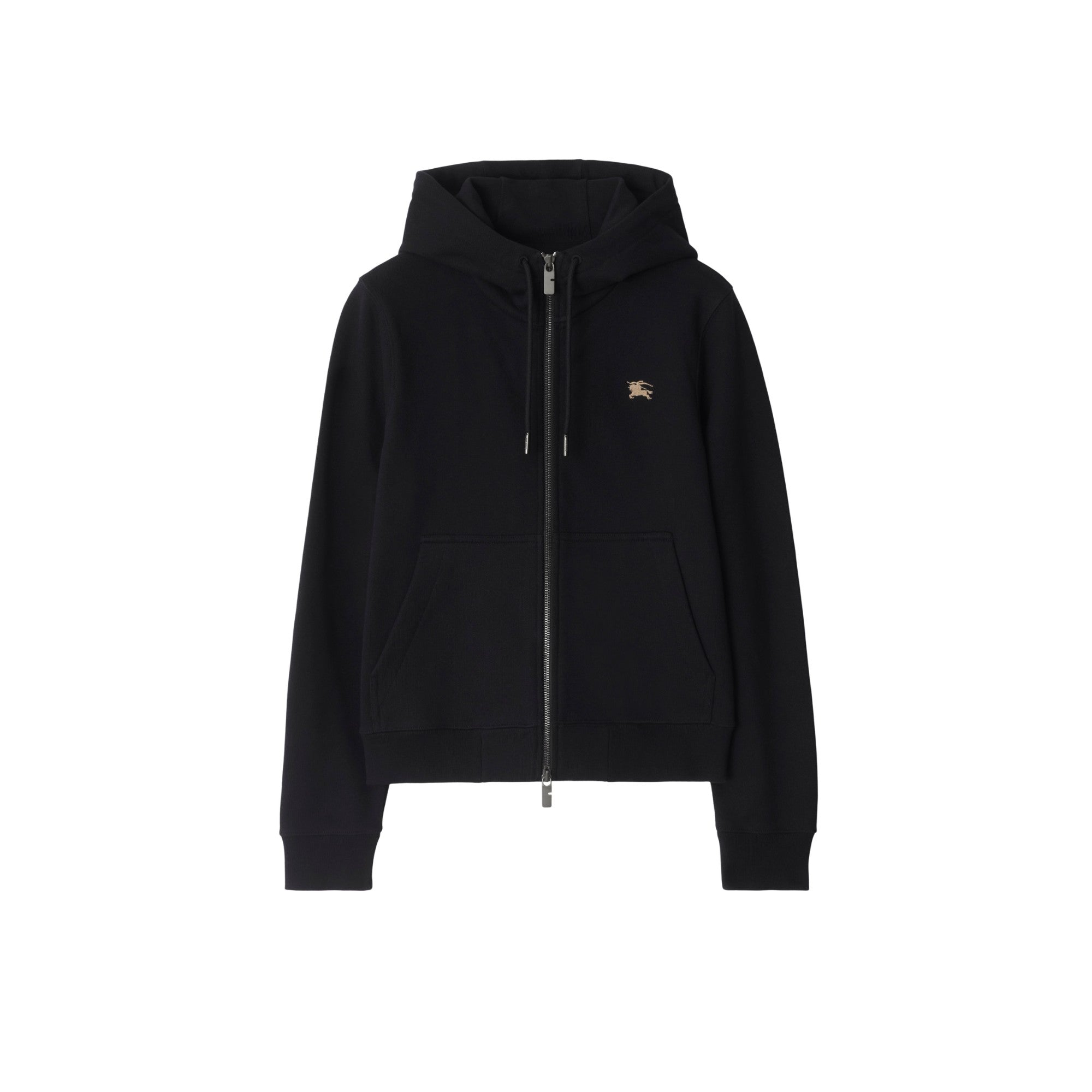 상품설명 : 경량 루프백 면 소재의 슬림핏 지퍼 후디. 1980년대 버버리 가방에서 처음 소개된 아카이브 모티프인 버버리 나이트 스탬프가 자수로 연출된 아이템.##양방향 지퍼 여밈#드로스트링 후드#파우치 포켓#리브 짜임 트리밍#가슴의 기마상 디자인(Equestrian Knight Design, EKD) 자수