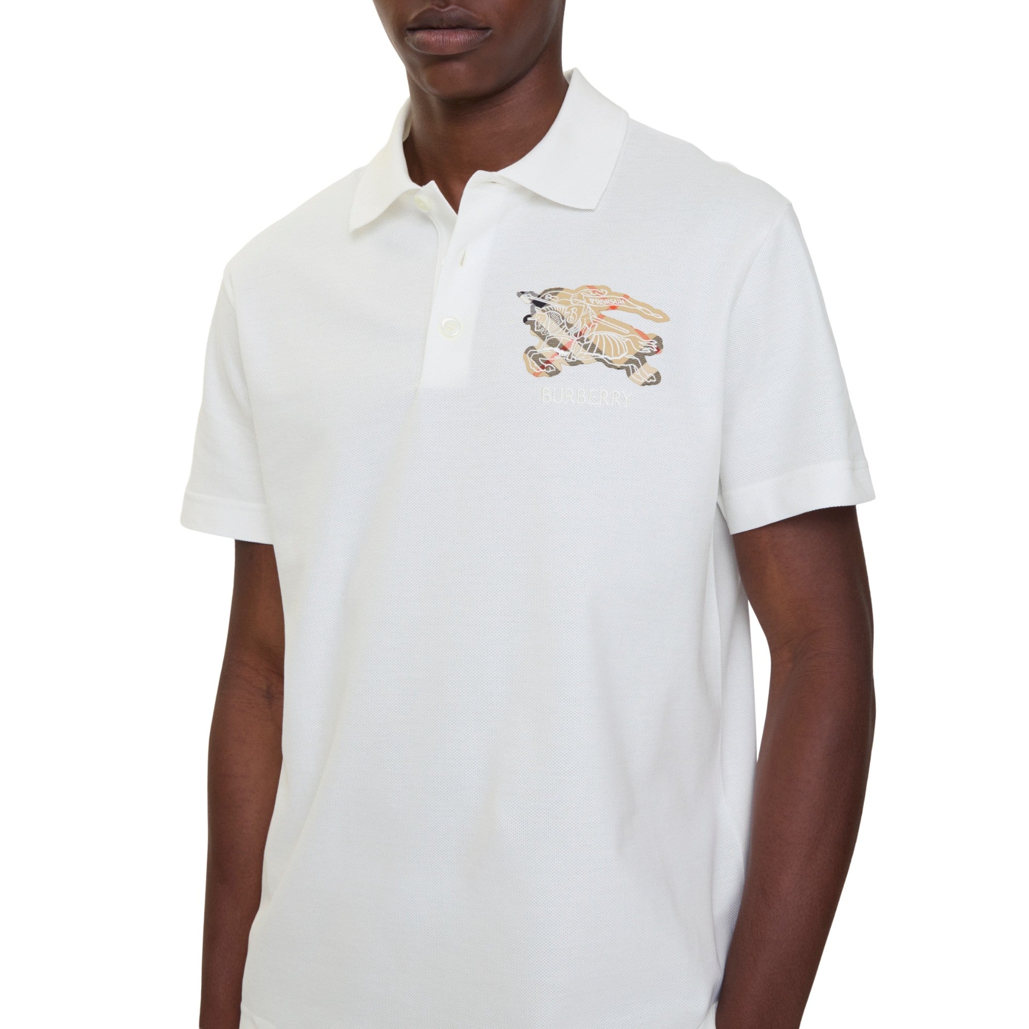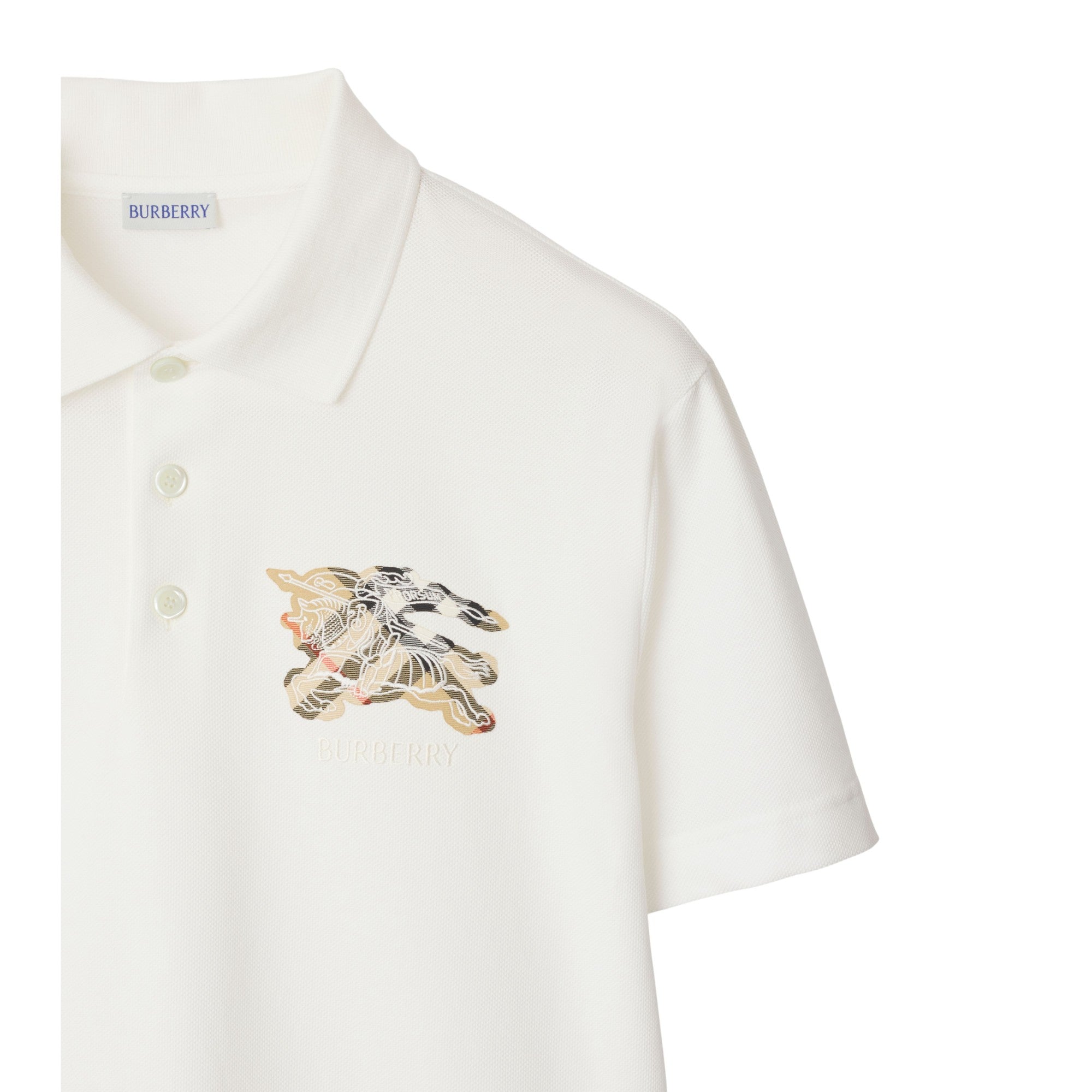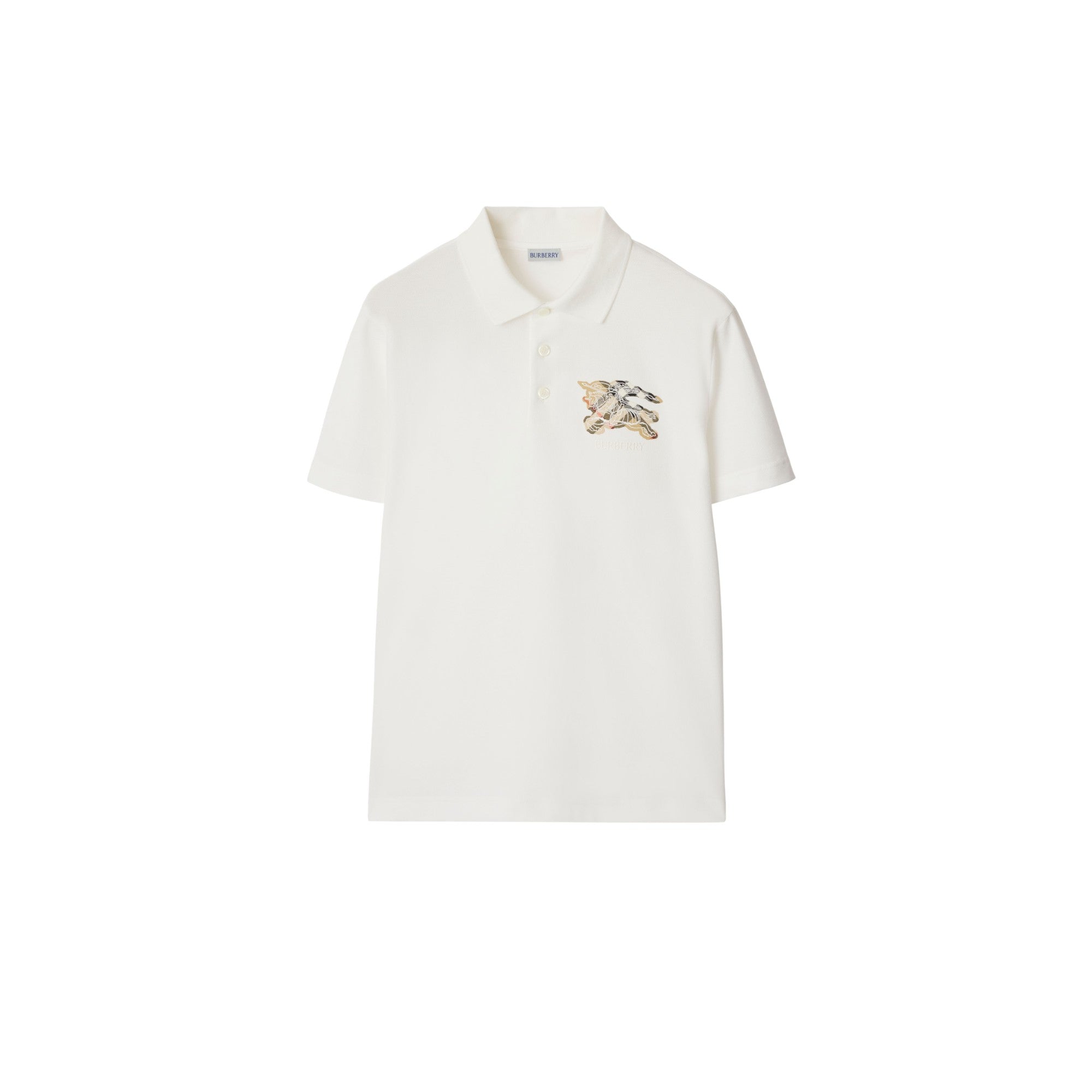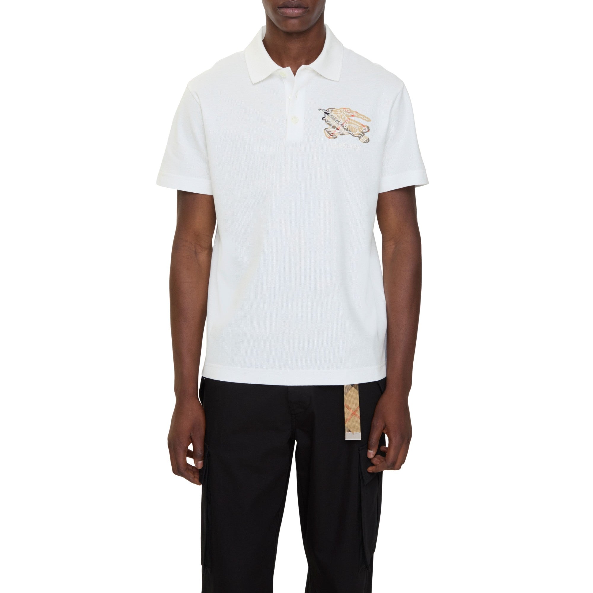 상품설명 : 경량 면 피케 소재의 슬림핏 폴로셔츠. 시그니처 샌드 베이지 색상의 버버리 체크를 배경으로 연출된 기마상 디자인(Equestrian Knight Design, EKD) 및 버버리 로고 자수가 특징.##플래킷의 단추 디테일#칼라의 리브 짜임 디테일#가슴의 버버리 레터링 자수