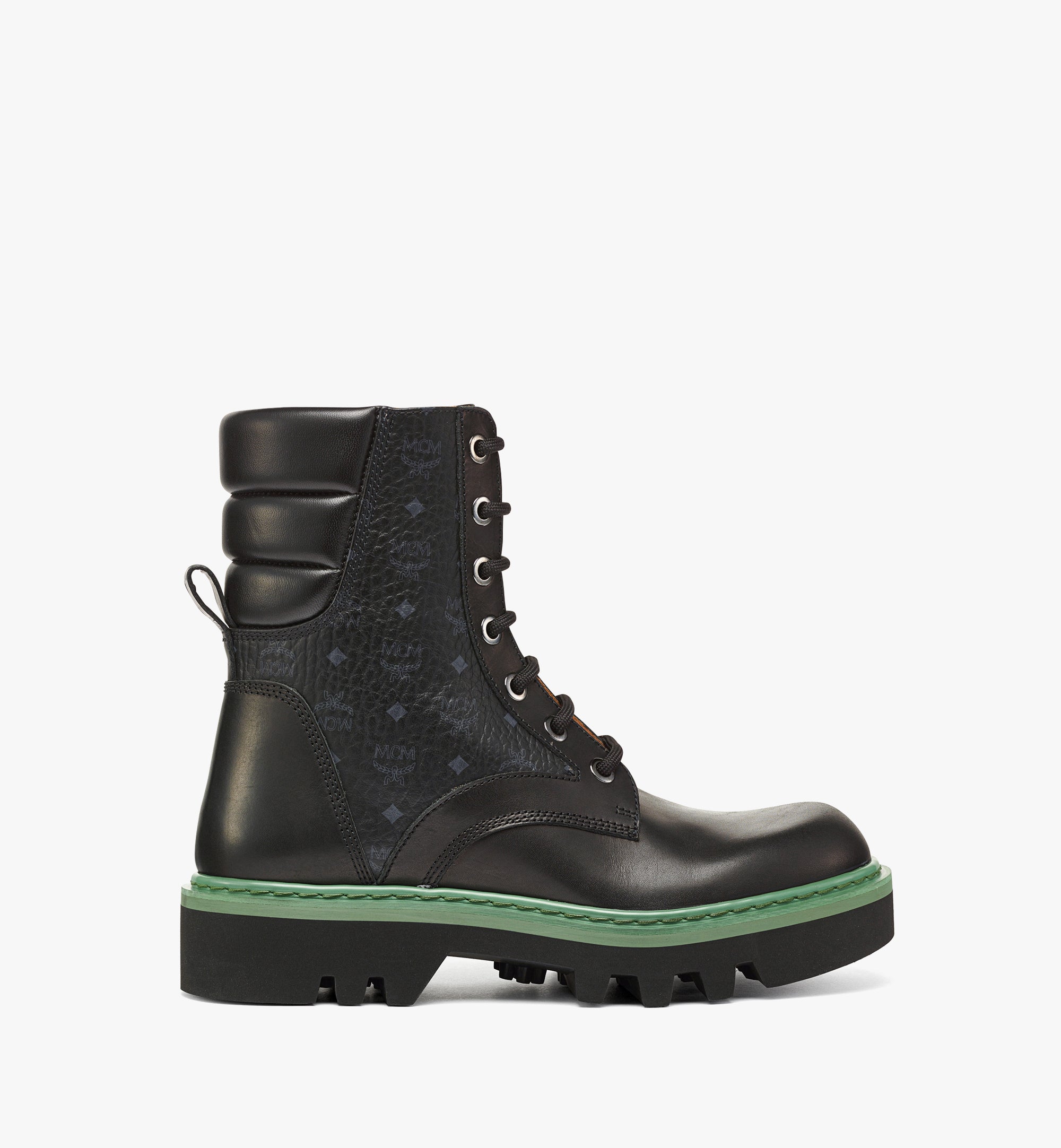 이탈리안 송아지 가죽과 양가죽, 시그니처 비세토스로 제작하여 하우스의 헤리티지 수공예를 보여주는 바이커 부츠