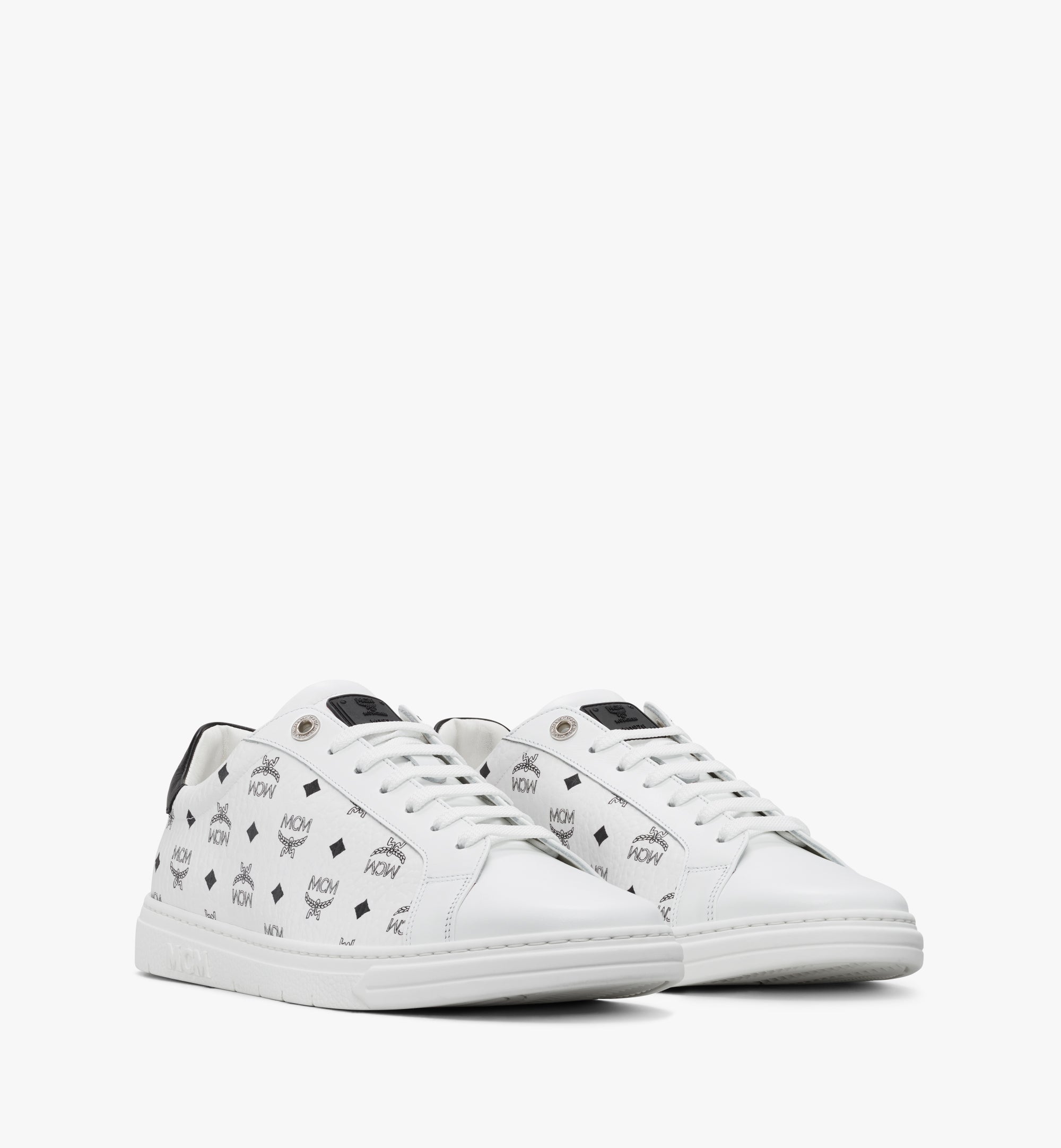 비세토스 모노그램 코티드 캔버스송아지 가죽 안감메탈 MCM 브랜드 로고 아일렛엠보스드 MCM 로고가 있는 그레인드 TPU 아웃솔패딩 처리된 텅에 MCM 로고 플레이트송아지 가죽 아이스테이와 힐 탭풋베드의 MCM 로고 프린트송아지 가죽 힐 탭