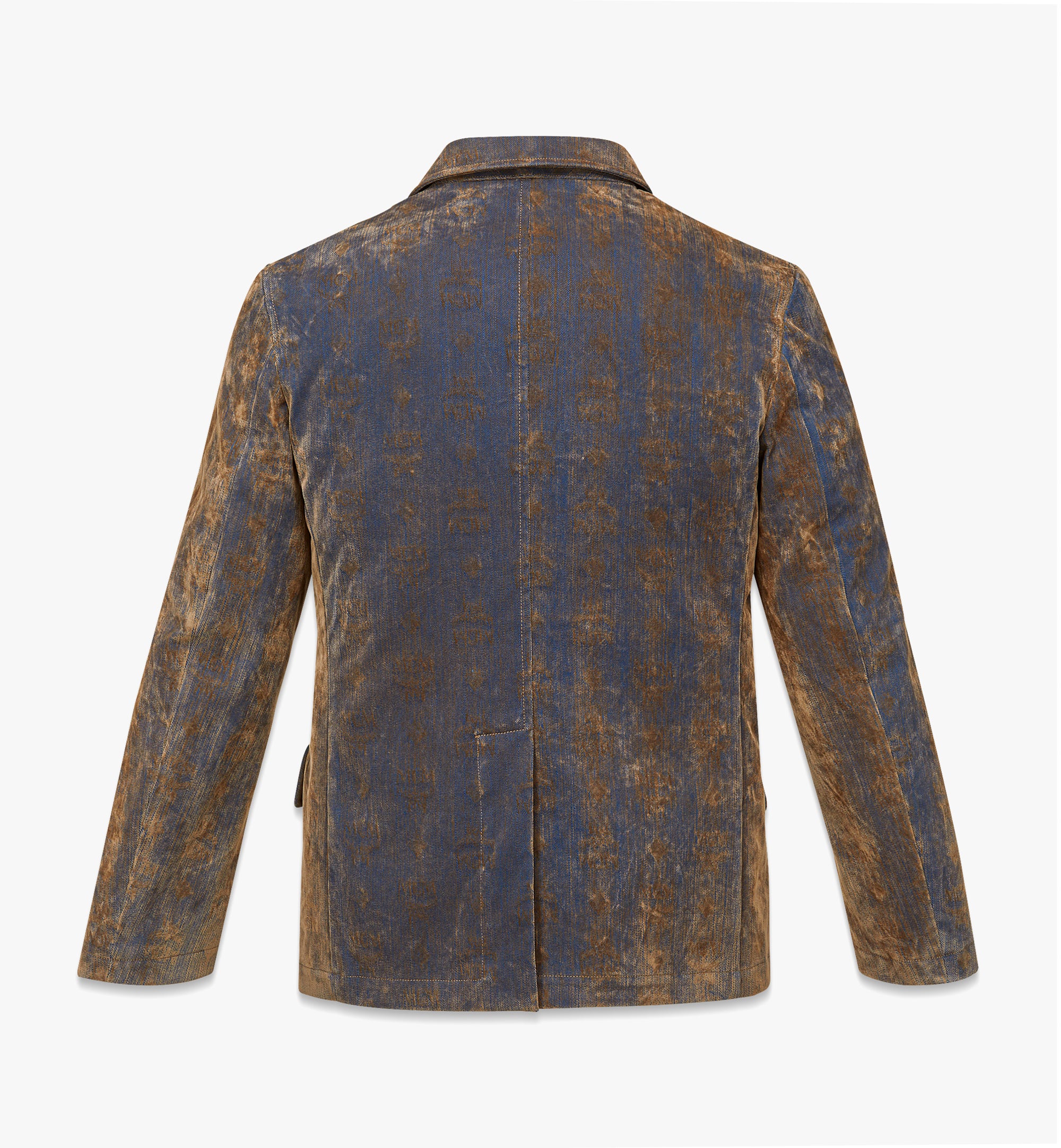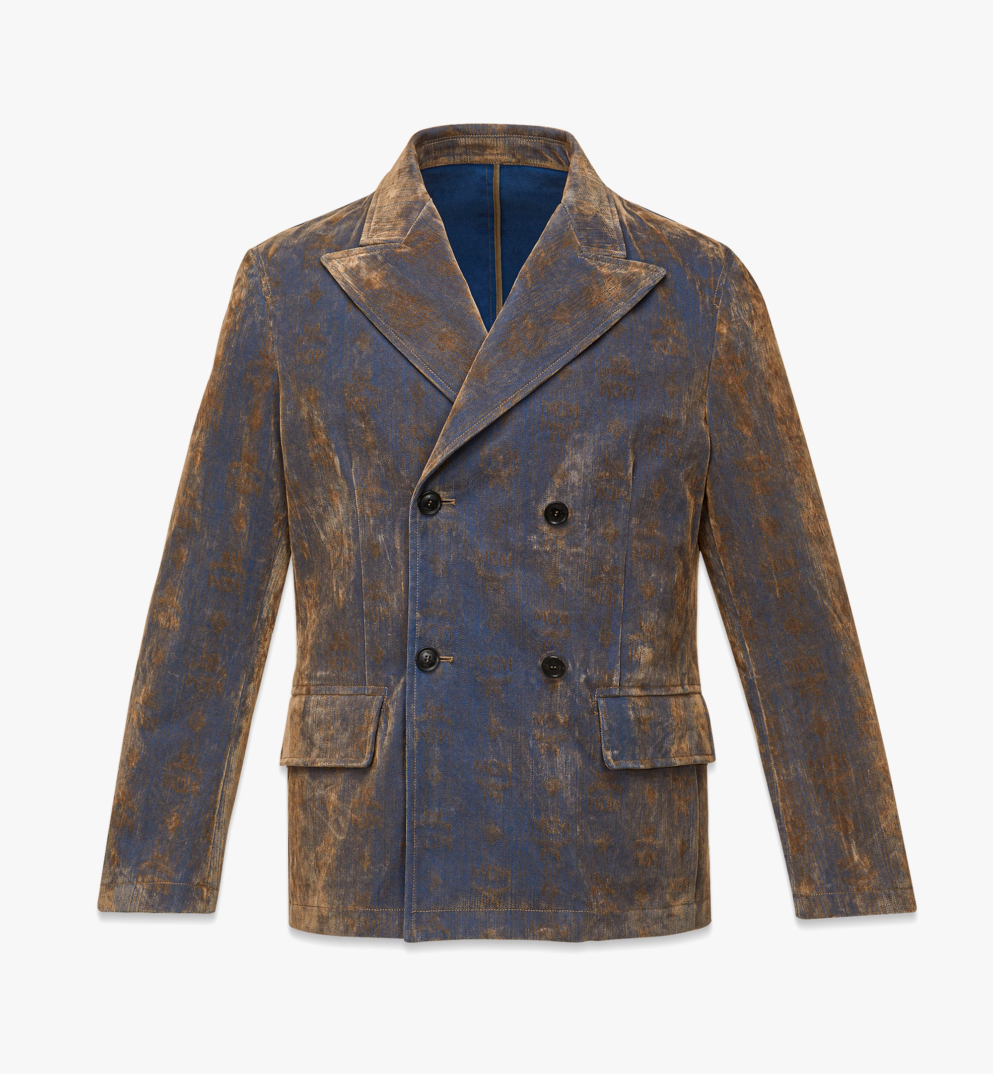 벨벳 플로킹이 돋보이는 더블 브레스티드 모노그램 자카드 데님 재킷