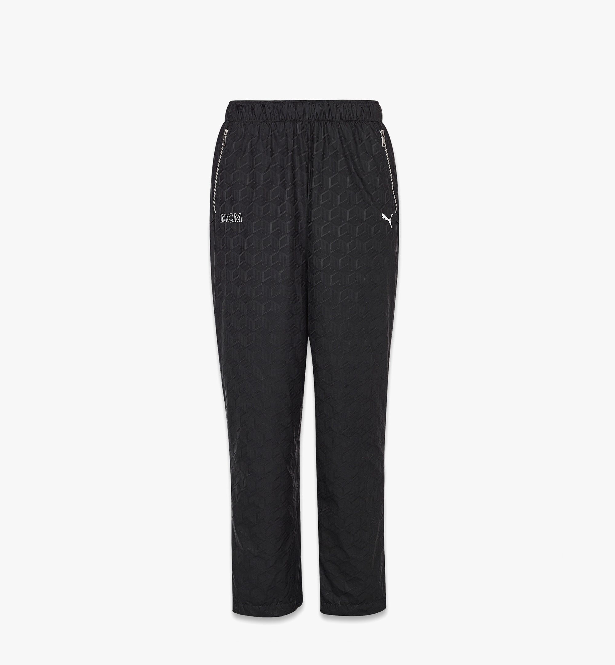 1990년대 랩 씬과 농구 코트를 테마로 지속 가능한 이탈리아산 나일론 소재로 제작된 레트로 스타일의 ‘MCM’ 모노그램과 건축적인 큐빅 패턴이 돋보이는 자카드 트랙팬츠