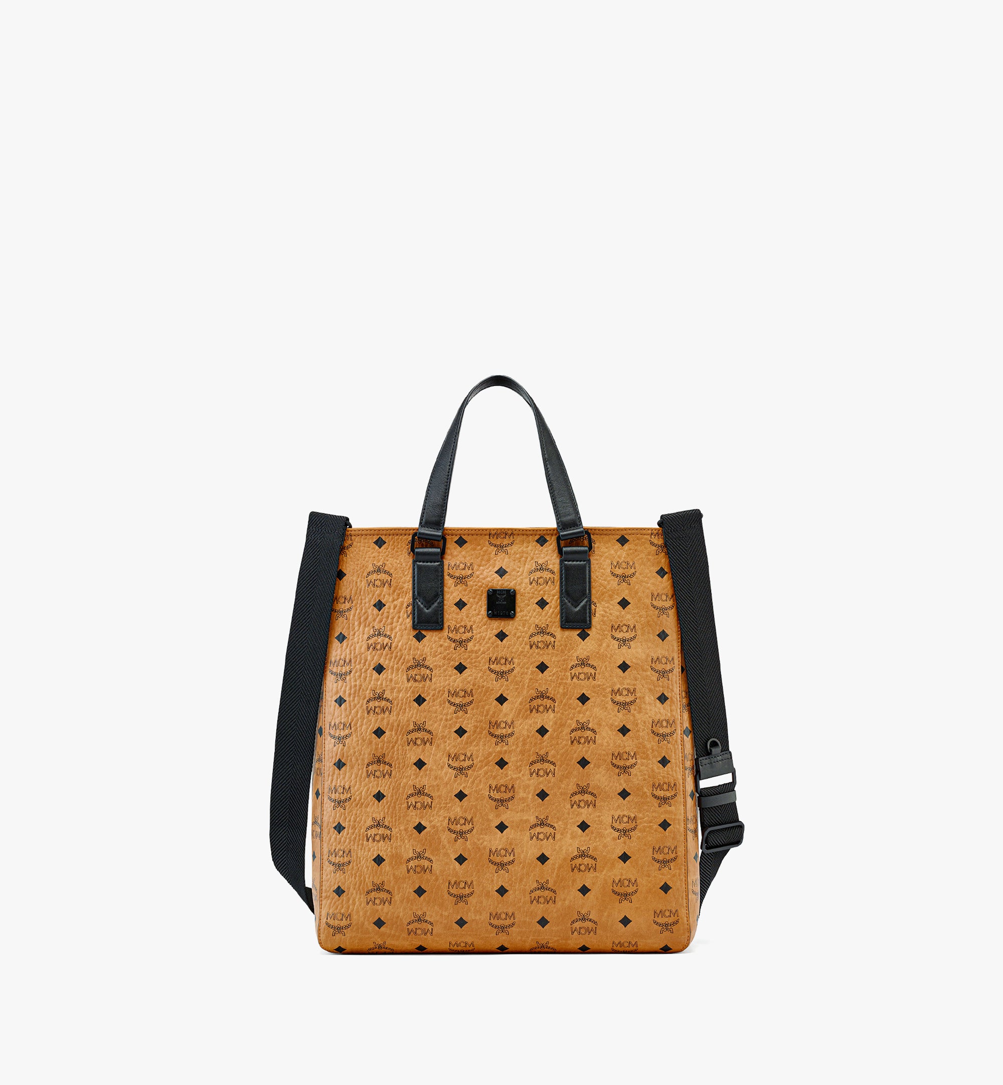 비세토스 모노그램 코티드 캔버스나파 가죽 트림매트 블랙 금속 장식스웨이드 마감 마이크로파이버 안감탈부착 및 조절 가능한 헤링본 웨빙 스트랩레더 손잡이 부분전면의 MCM 로고 플레이트지퍼 잠금 장치내부 지퍼 포켓스트랩 길이: 80cm~124cm, 핸들 길이: 14cm