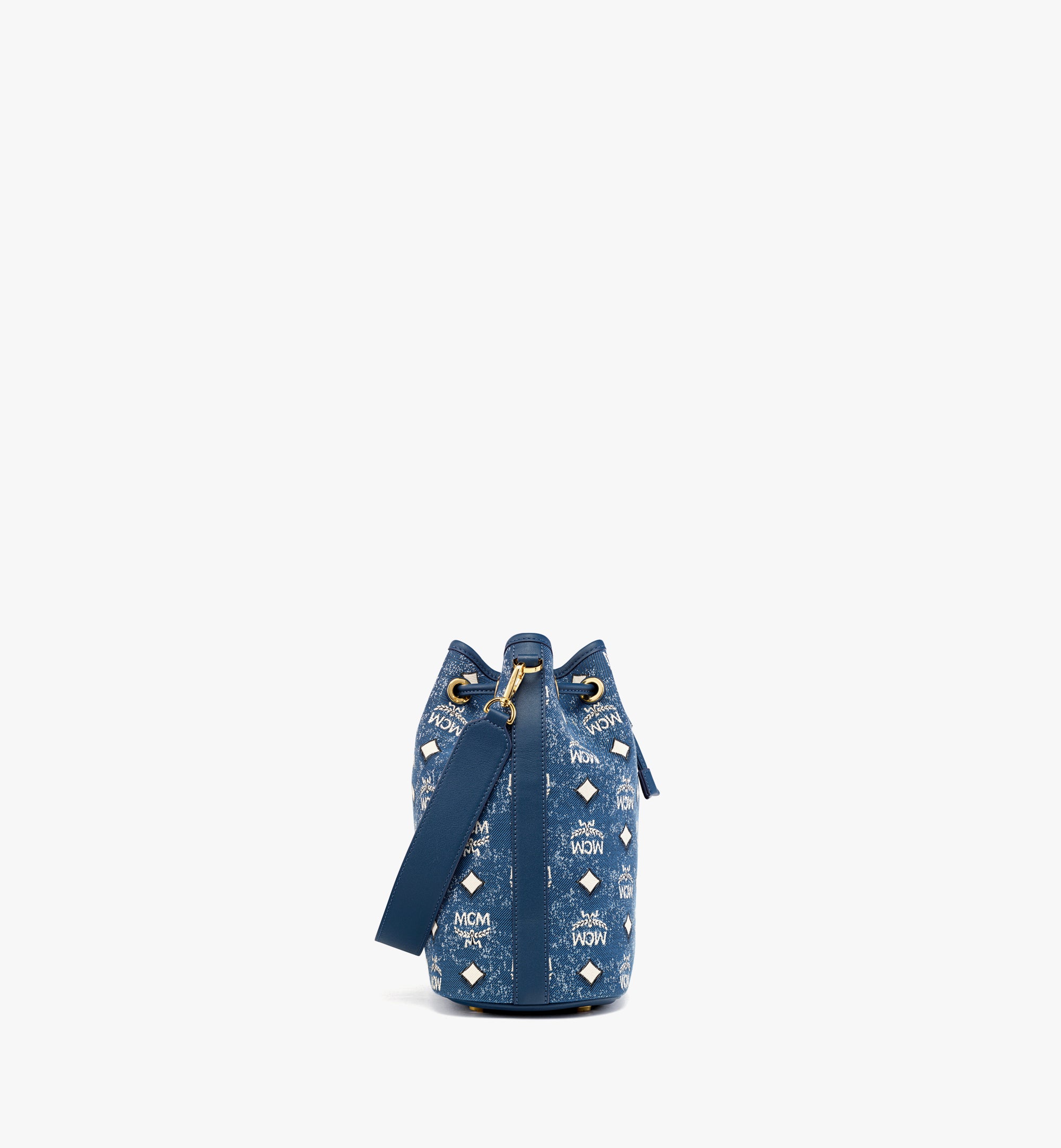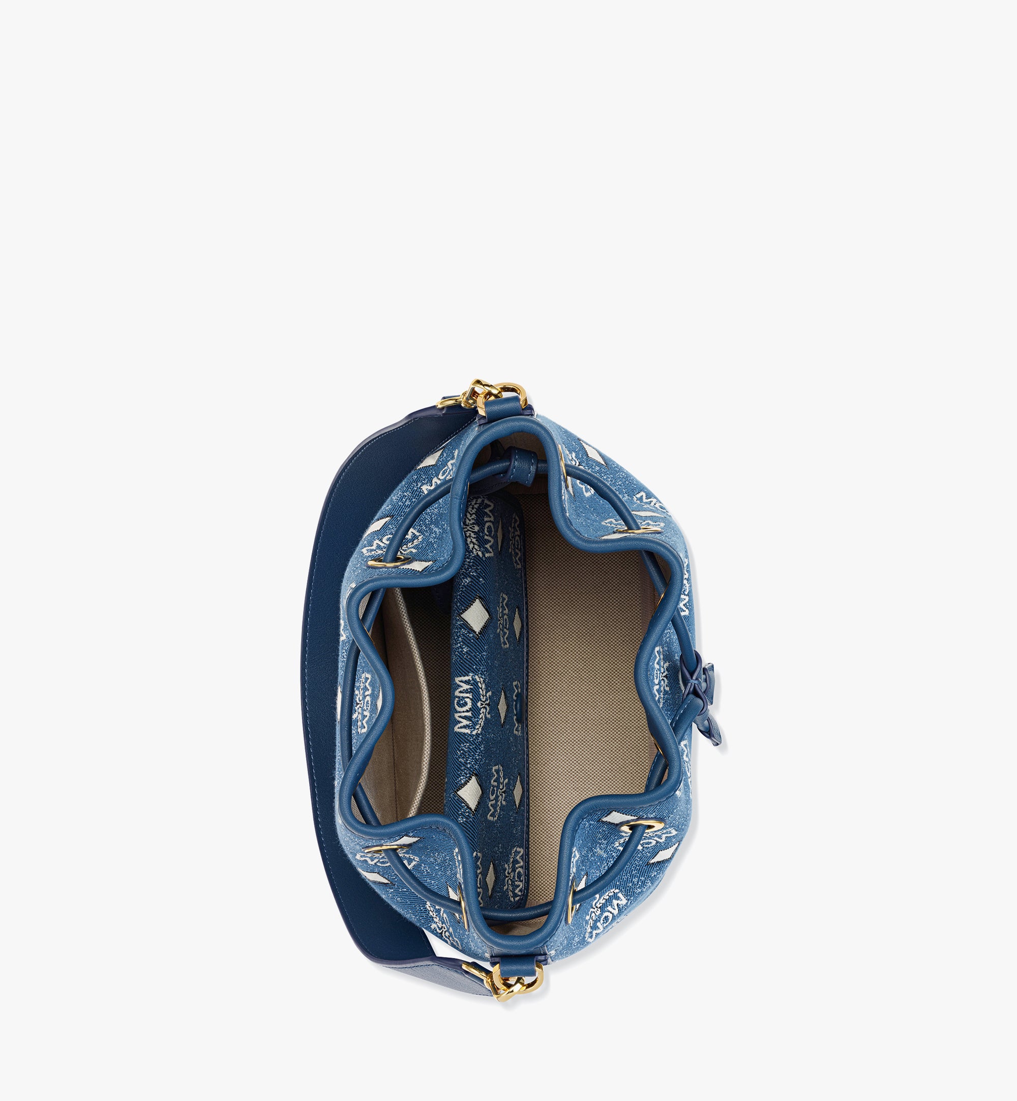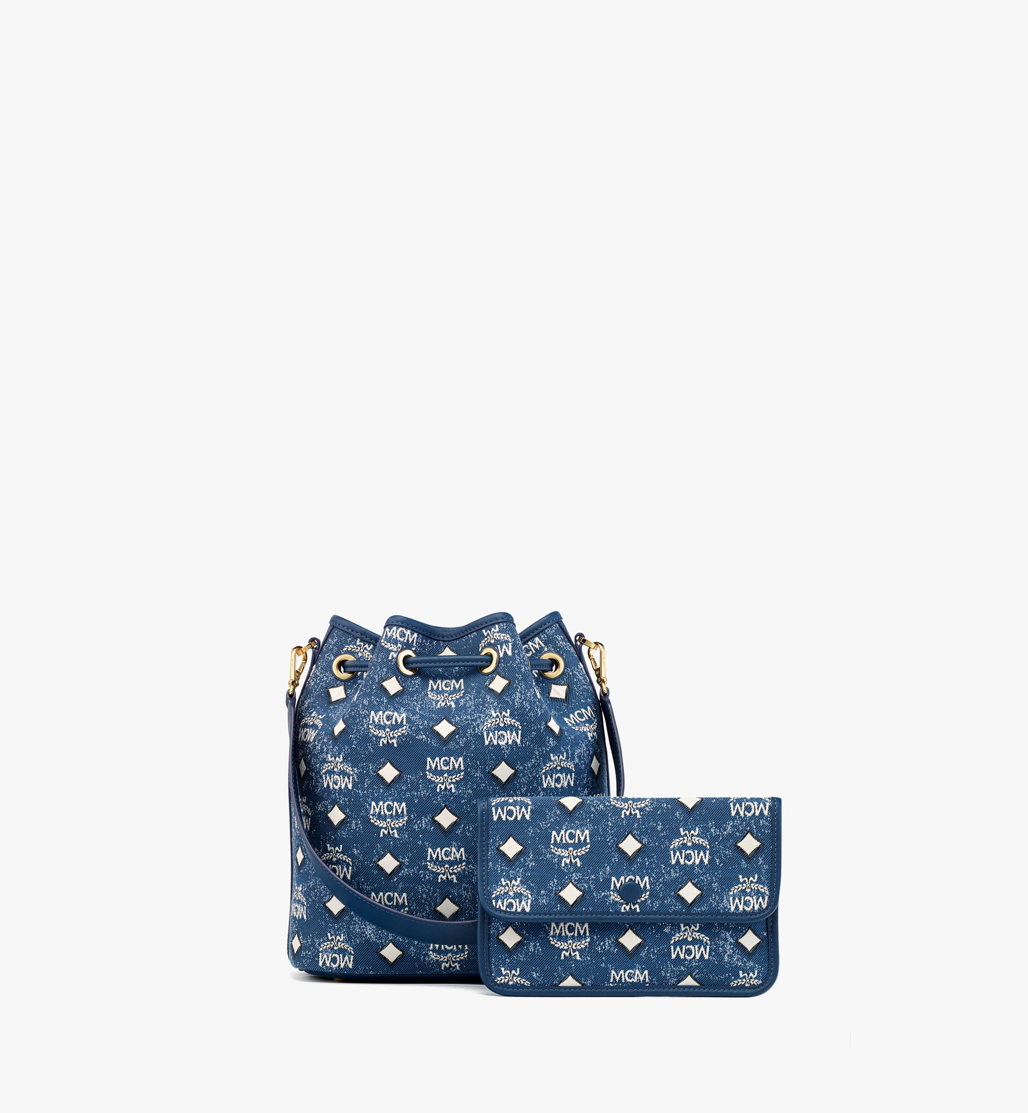 이탈리아 데님 자카드와 나파 가죽 소재의 미디엄 버킷백