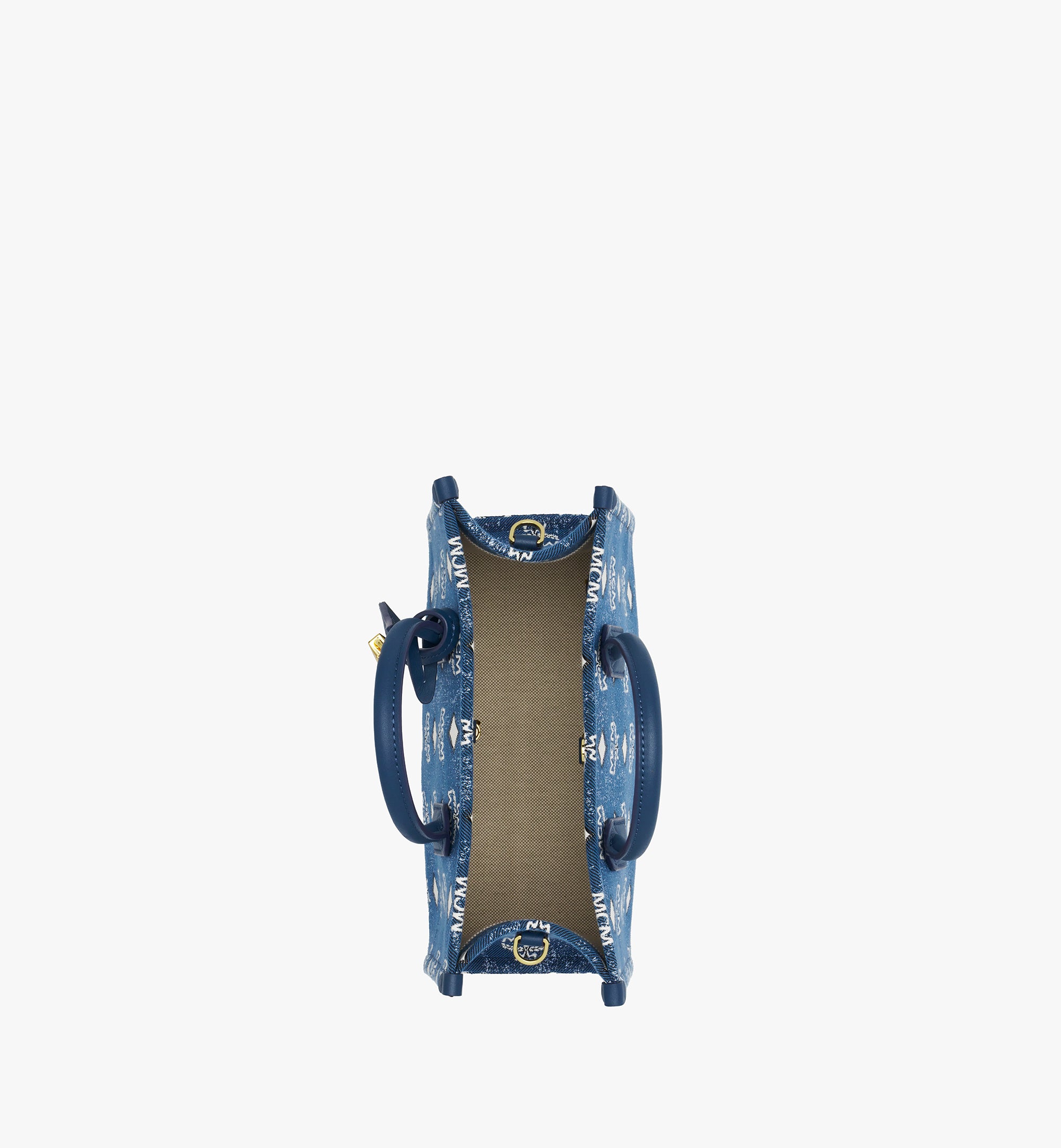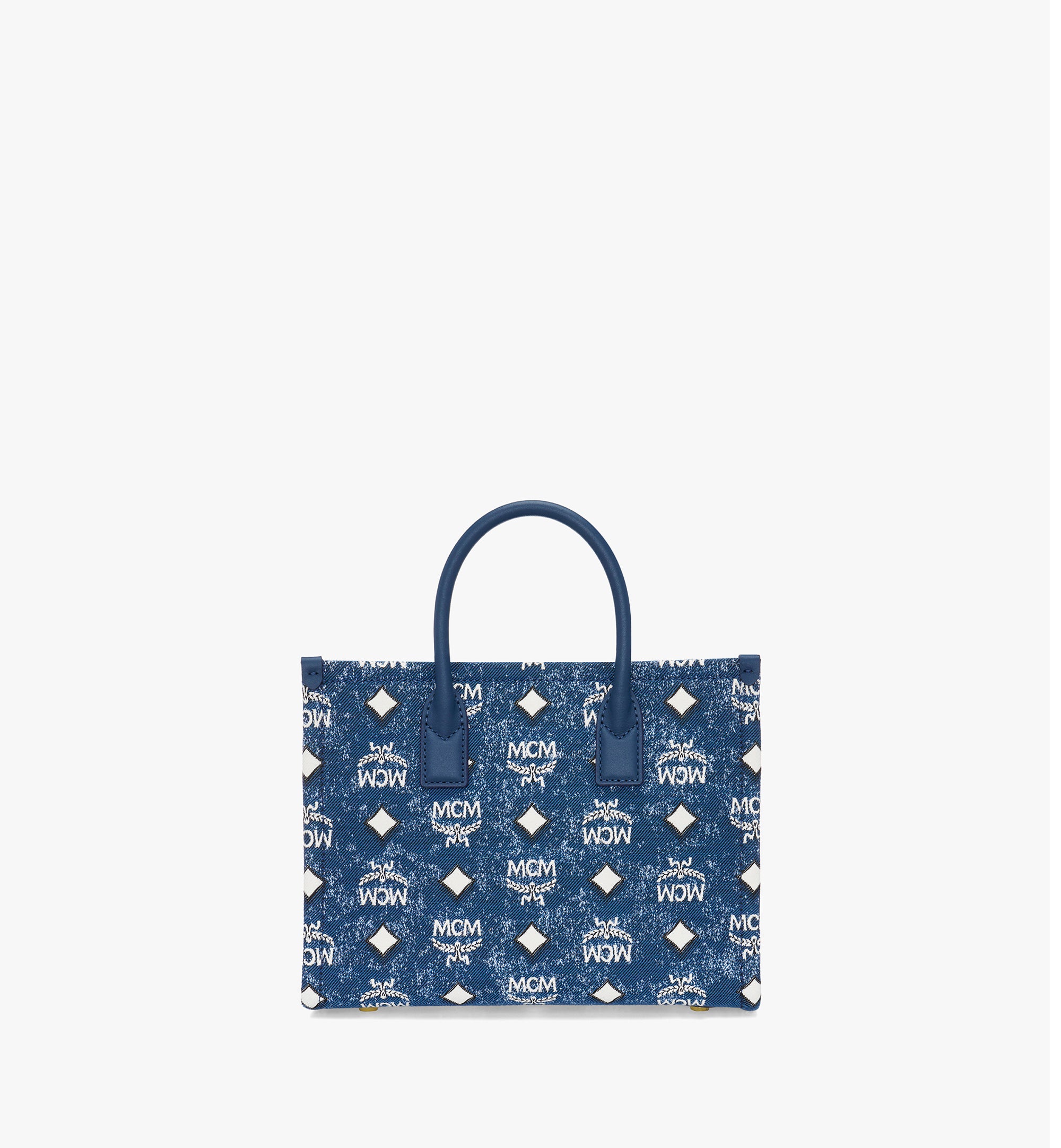 이탈리아 데님 자카드와 나파 가죽 소재가 트리밍된 스몰 토트백